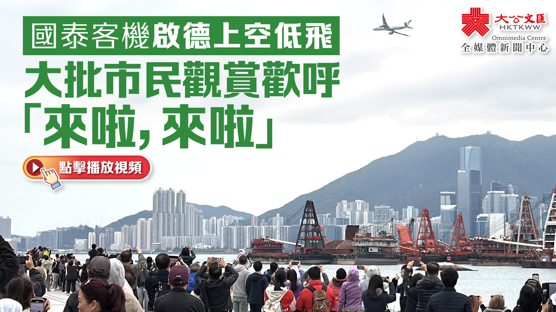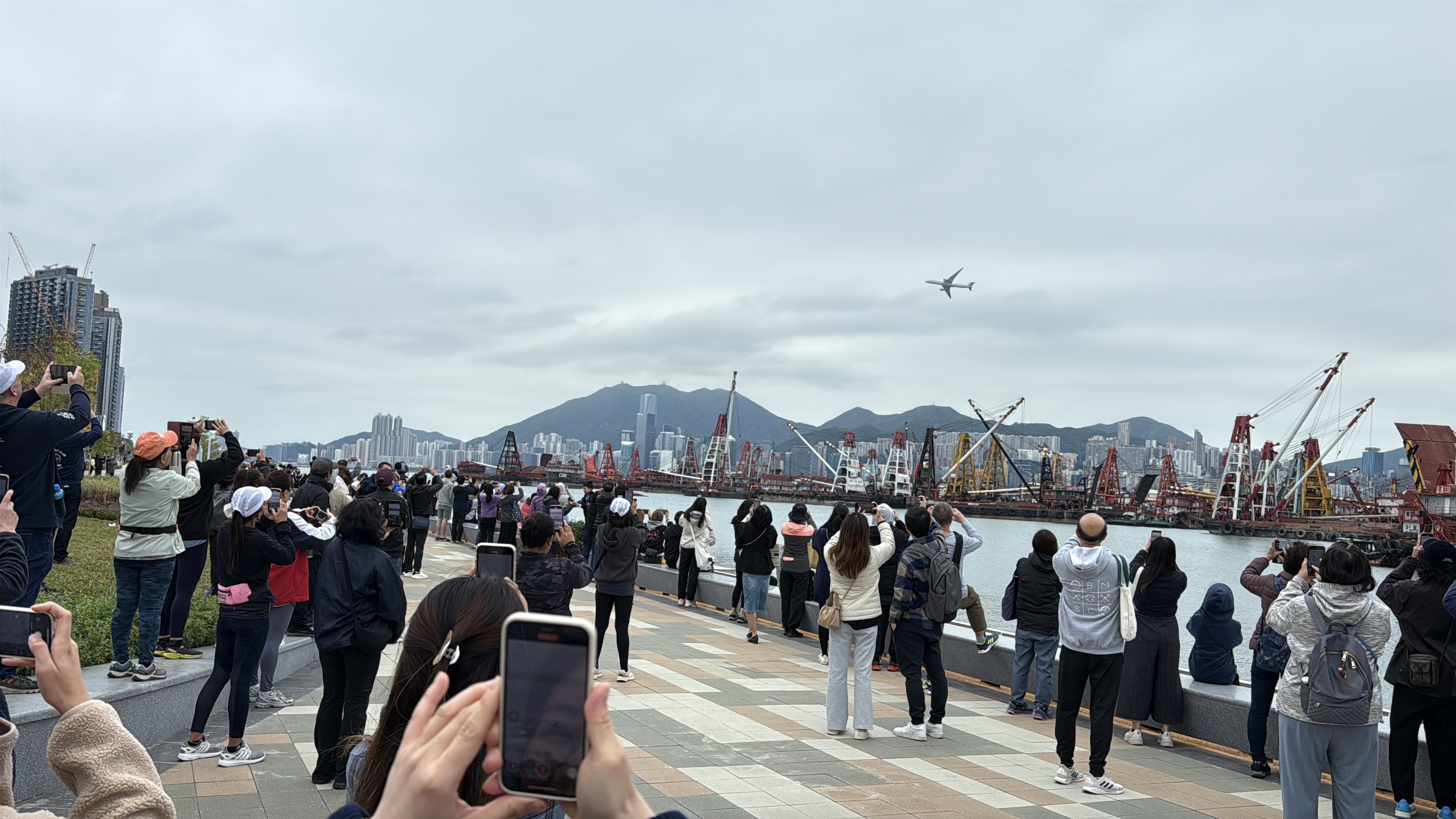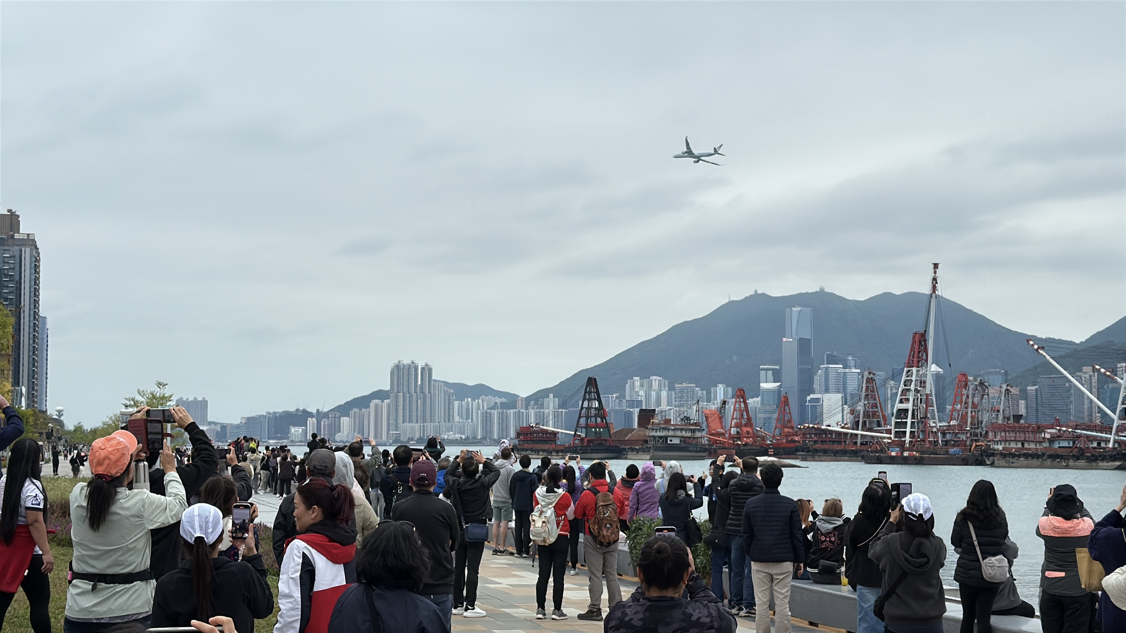 大公文匯全媒體報道,為紀念啟德機場100周年,國泰航空客機今日(30日)飛越維港,低飛到啟德體育園上空。儘管今日天氣微涼,啟德體育園外仍早早聚集大量市民,期待一睹飛機低飛啟德的壯觀畫面。