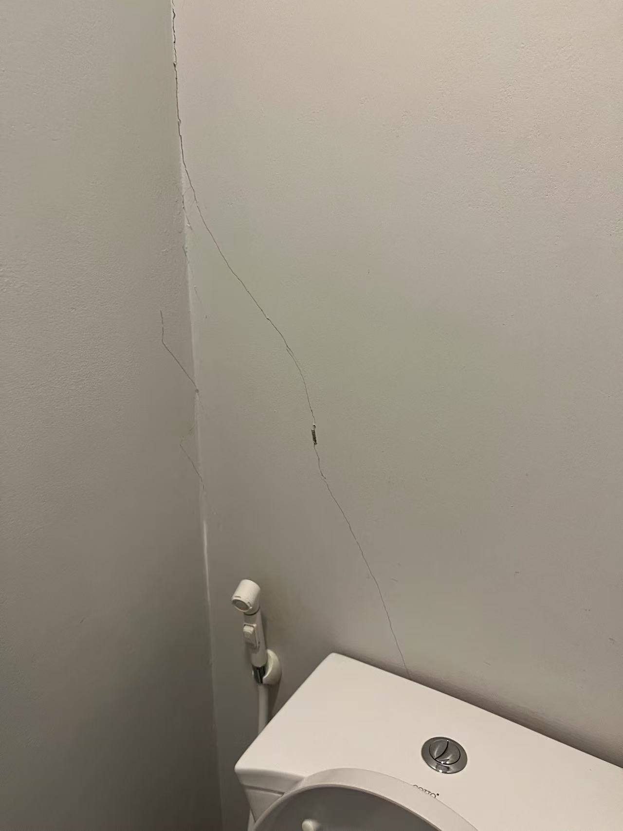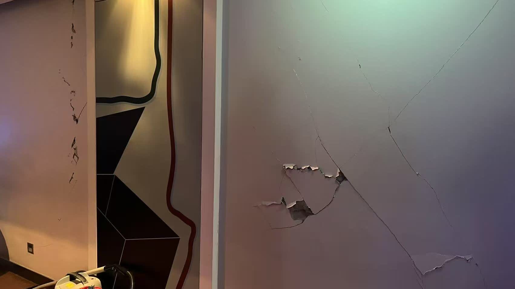 (大公文匯全媒體 特派記者 麥鈞傑 曼谷報道)「有個情況要報告,我們住的酒店牆身有裂縫。」在飛行3小時、落地曼谷投入採訪工作5小時後,我和同事終於在今日(3月30日)傍晚抵達在網上預訂的酒店check-in,沒想到乘坐電梯到房間所在的樓層後,剛走到房門口就看到門旁有一處不尋常的裂縫。本着應該沒有問題的心態推門而入,結果印入眼簾的是更多的裂縫,分布在房間的不同地方。斟酌再三,記者向後方編輯部發回了開頭那句話。