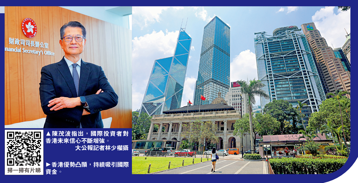 (大公報記者 邵淑芬、湯嘉平)近期香港股市暢旺,投資市場氣氛日益正面。財政司司長陳茂波接受《大公報》專訪時表示,國際投資者態度明顯轉向積極,股市交易量回升、外資機構擴大本地業務、家族辦公室數量增加等,均反映信心恢復。他引述部分基金經理指出,此前因擔憂地緣政治而低配香港及內地市場,現在則擔心「執輸」,正在急於補倉。他強調,在「一國兩制」框架下,香港的法治基礎、資金自由流動、港元與美元掛鈎的匯率穩定性,以及聯通內地和海外的獨特角色,仍是吸引外資的核心優勢。