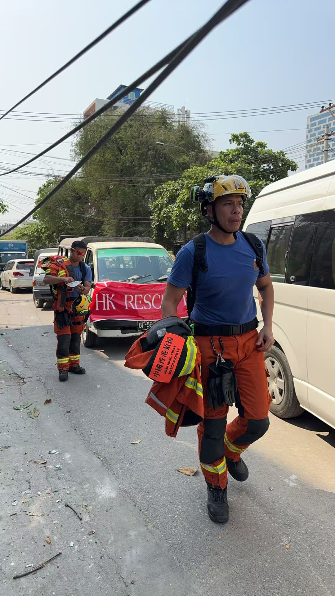 (大公文匯網 記者 譚旻煦)「這裏是緬甸VIN STAR酒店倒塌現場,有人發了求救信息說家人被壓在酒店下面了,我們過來勘察一下情況」,緬甸華人彭林今日(31日)告訴記者,下午開始有多支救援隊來到這裏準備開展救援,在人群中,他見到了中國香港救援隊,「中國多支救援力量在這裏匯集,讓大家感到力量」。