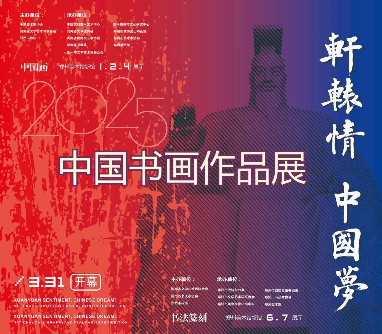3月31日下午,由中國美協、河南省文聯、河南省書協、鄭州市政協主辦,中國文聯美術藝術中心、河南省美協、河南省民協、河南省書畫院、鄭州市政協辦公室、鄭州市文聯、鄭州市黃帝文化研究中心、鄭州市政協嵩山書畫院、鄭州市美協、鄭州市書協、鄭州美術館聯合承辦的「軒轅情 中國夢——2025中國書畫作品展」在鄭州美術館(新館)開幕。