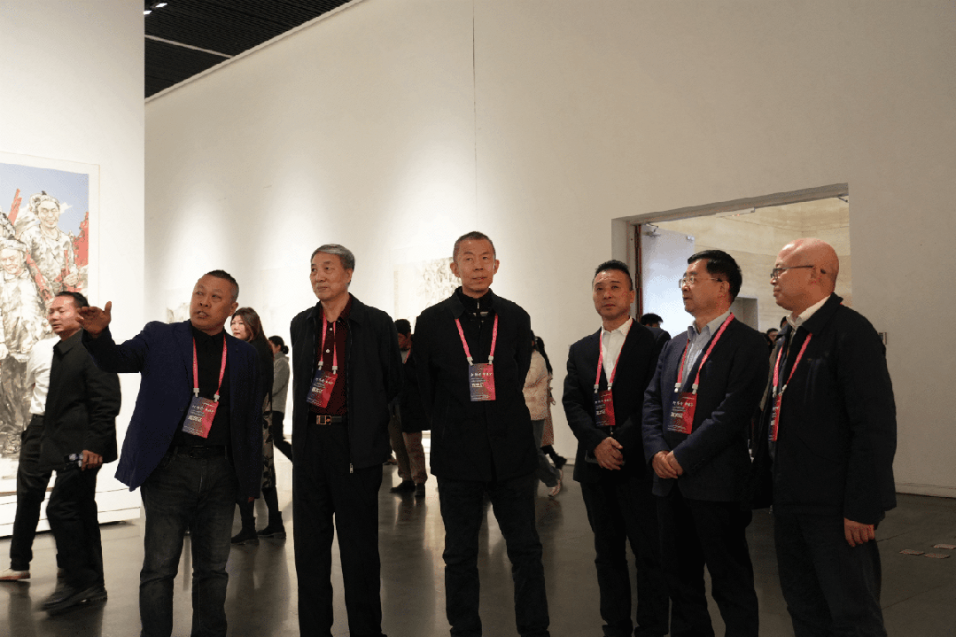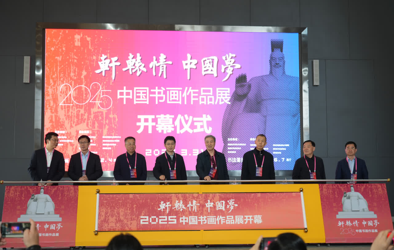 中國美術家協會分黨組書記、駐會副主席屈健;中國美術家協會副主席、河南省美術家協會主席劉傑;中國書法家協會副主席劉月卯;中央文史研究館館員,國務院參事室新聞顧問趙德潤;河南省文學藝術界聯合會黨組書記方啟雄;鄭州市委常委、宣傳部部長陳明;鄭州市政協黨組副書記王萬鵬;鄭州市政協黨組成員、副主席、秘書長宋建國,為「軒轅情 中國夢——2025中國書畫作品展」共同推動開幕啟動器。