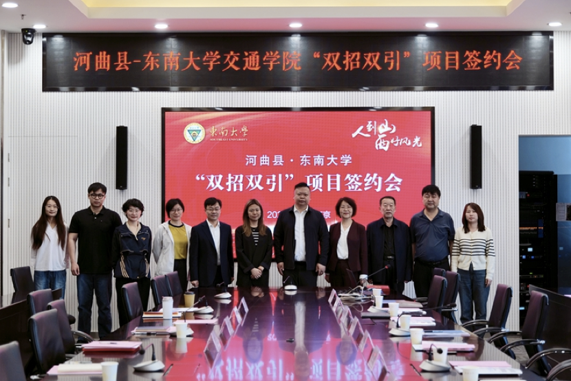 3月26日,河曲縣與東南大學「雙招雙引」項目簽約會在南京市東南大學交通學院圓滿舉行。此次簽約會由東南大學交通學院副院長章定文主持,學院黨委副書記、副院長張航,河曲縣副縣長景旭光,縣直相關部門及企業負責人出席儀式。