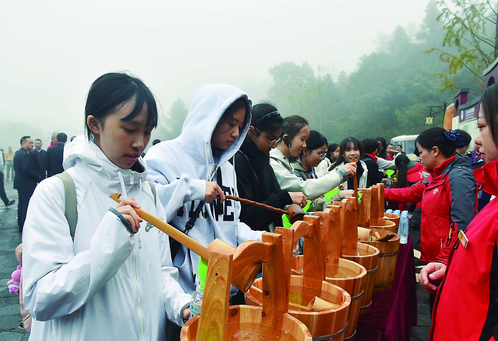 「東江水,超好喝的!」面對鏡頭,謝欣怡等一眾九龍真光中學「飲水思源」考察團學生去年底登上安遠三百山,自發為東江水代言,並即興創作口號。