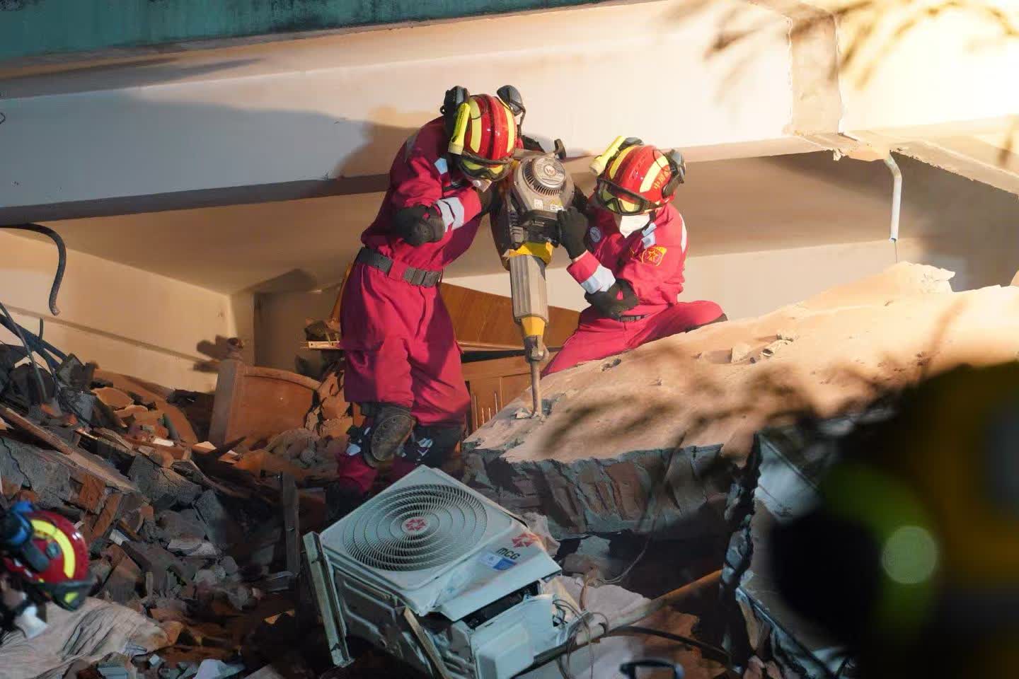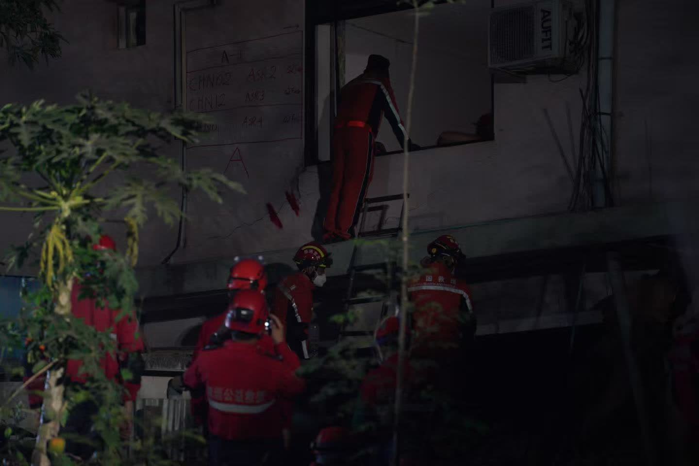 記者在現場看到,下午成功救出一人後,中國救援隊一隊、二隊、中國香港特區救援隊和深圳公益救援隊持續在現場實施搜救工作。入夜後,消息指現場還有2名生還者,四支隊伍立刻分工合作,向可能有生還者的區域搜索。