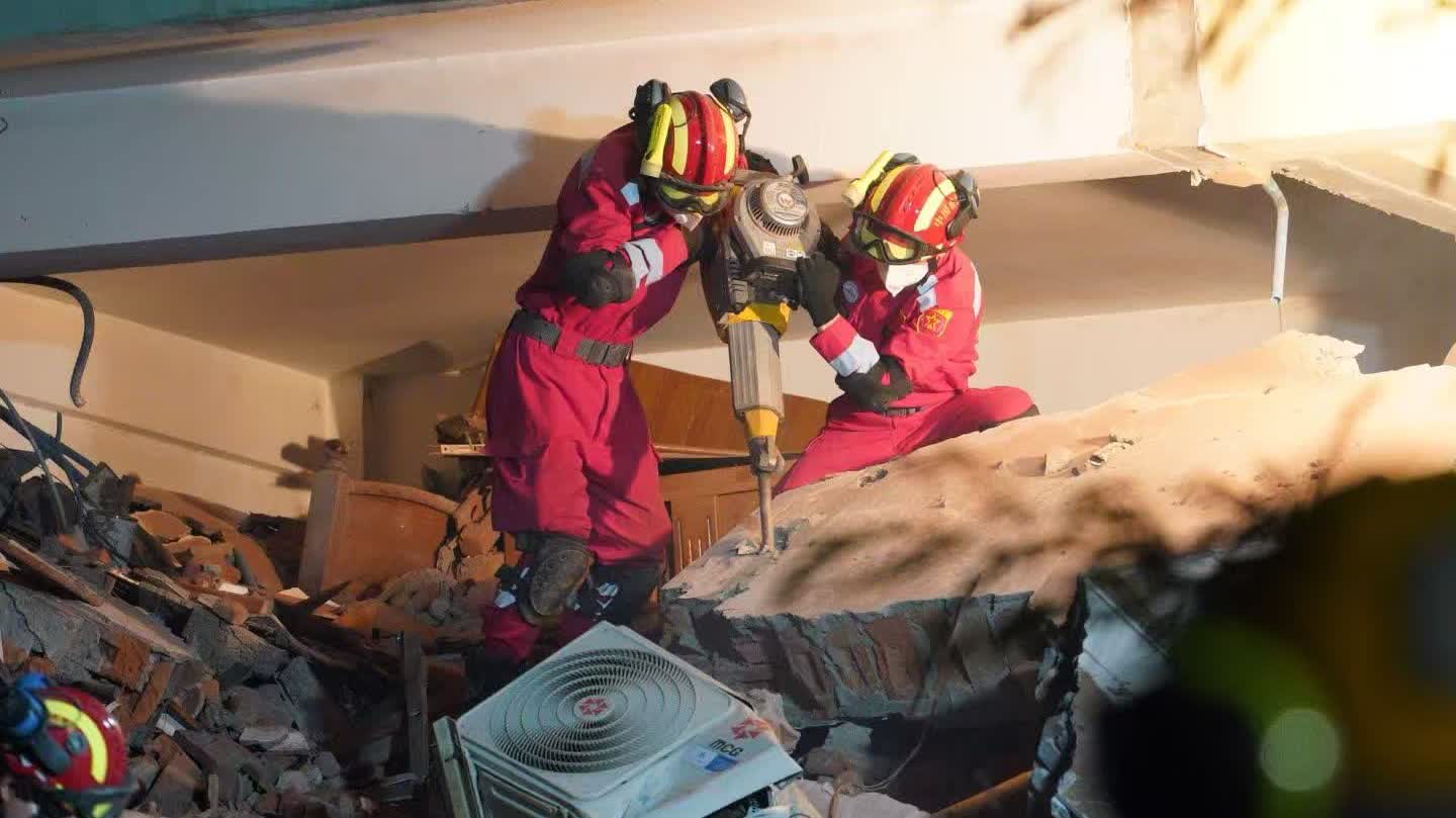 隨後,第五支救援隊曙光救援隊抵達現場,投入到搜救工作當中。在現場的中國救援力量不斷用破拆工具、探測儀器等設備,爭分奪秒在廢墟上打通救援通道,與時間賽跑。