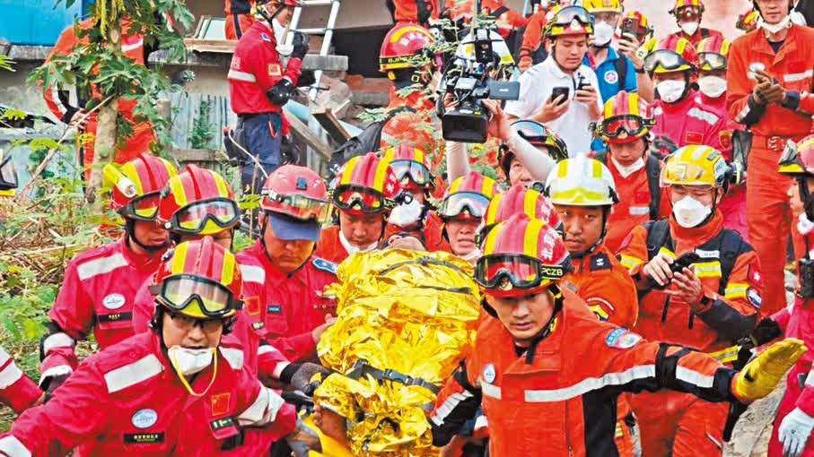 (香港文匯報記者 麥鈞傑、王嘉晨及唐文、丁春麗)超過120小時!頂着烈日高溫,冒着餘震的陰霾,中國救援力量在緬甸創造生命救援奇跡!當地時間4月2日17時40分許,中國救援隊和由中國軍隊參與組派的中國國際救援隊在緬甸曼德勒市金色鄉村酒店救援點成功救出一名已被困近125小時的52歲男性酒店員工,該男子被救出時生命體徵良好,這是中國救援隊伍救出的第9名倖存者。據中國駐緬甸大使館發布,中國香港特區救援隊、深圳公益救援隊參與了此次聯合救援。