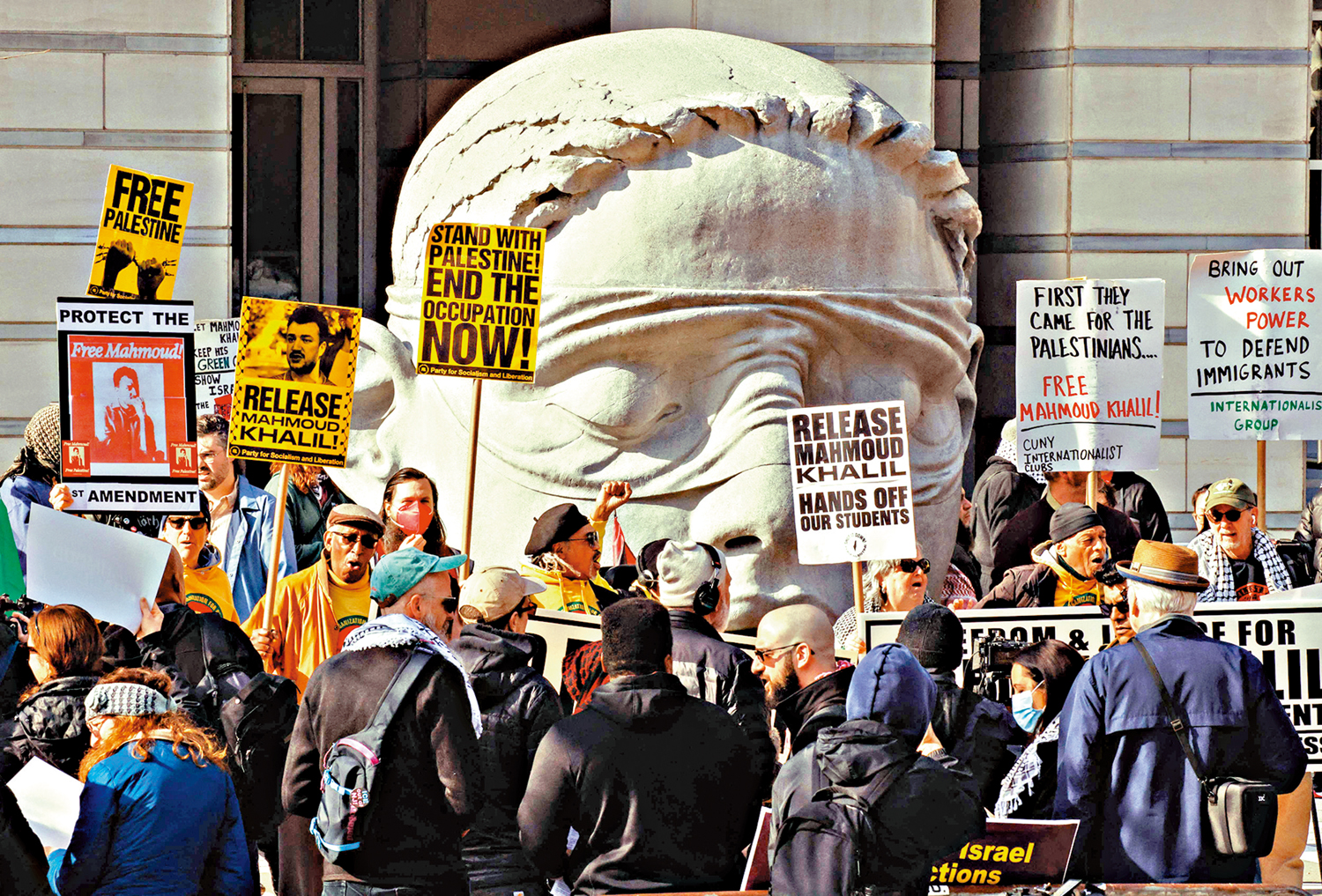 特朗普1月20日就職總統職位後簽署行政令,要求凡是參加示威活動或發表反猶太言論的移民,都需被驅逐出境。擁有美國綠卡的哥倫比亞大學學生哈利勒和來自印度的博士後研究員蘇里於上月被捕,並被要求驅逐出境。這二人都是在美國擁有合法身份的學生,均未被正式指控犯罪,目前法官已暫時阻止了對他們的驅逐。美國國務卿魯比奧表示,特朗普政府已撤銷300多名外國學生簽證,並稱此類行動將持續進行。