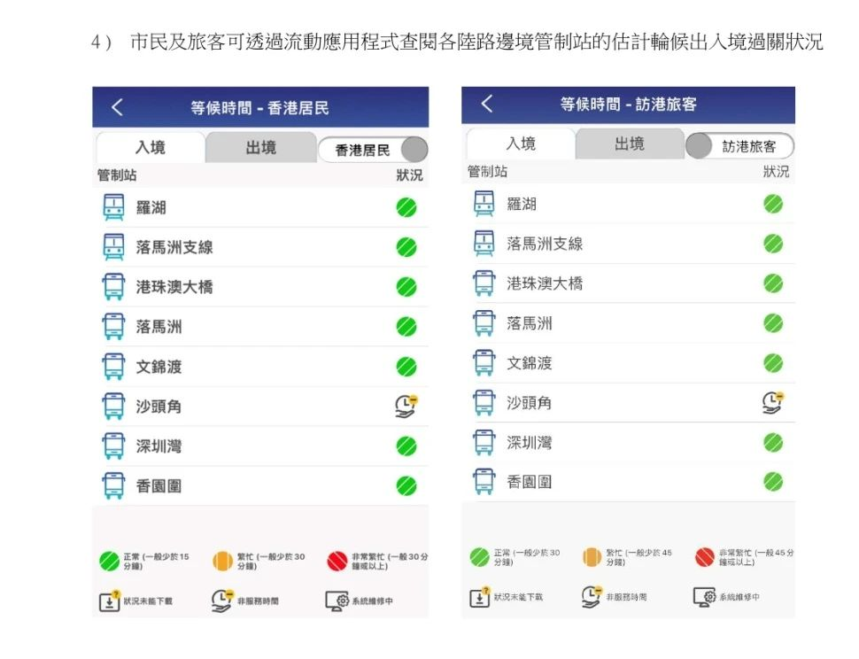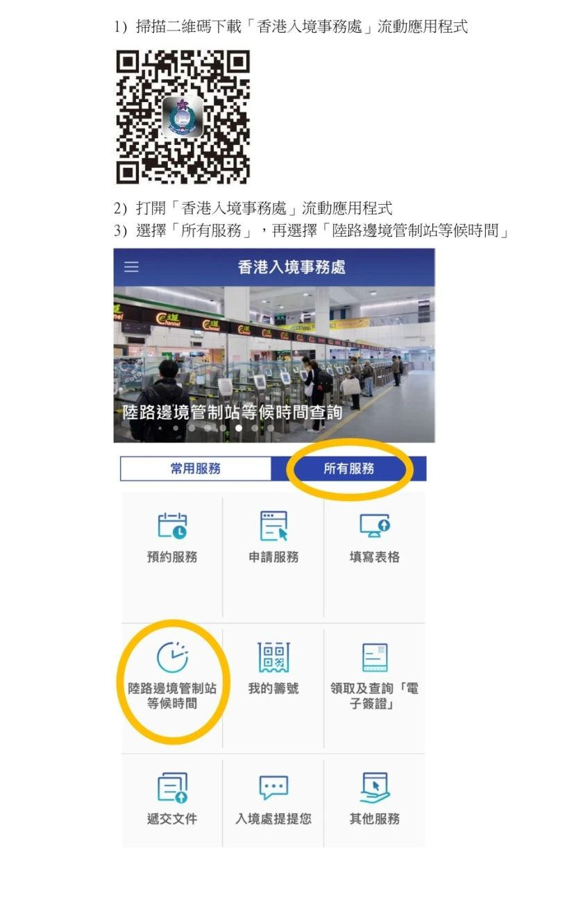 為避免旅客在口岸過關的輪候時間過長,入境處呼籲所有經陸路往返內地的旅客應預早計劃行程,盡量避免選擇在繁忙時段過關,並留意有關各邊境管制站交通情況的電台或電視廣播。旅客可瀏覽入境處網頁www.immd.gov.hk,查看各邊境管制站的繁忙時間。