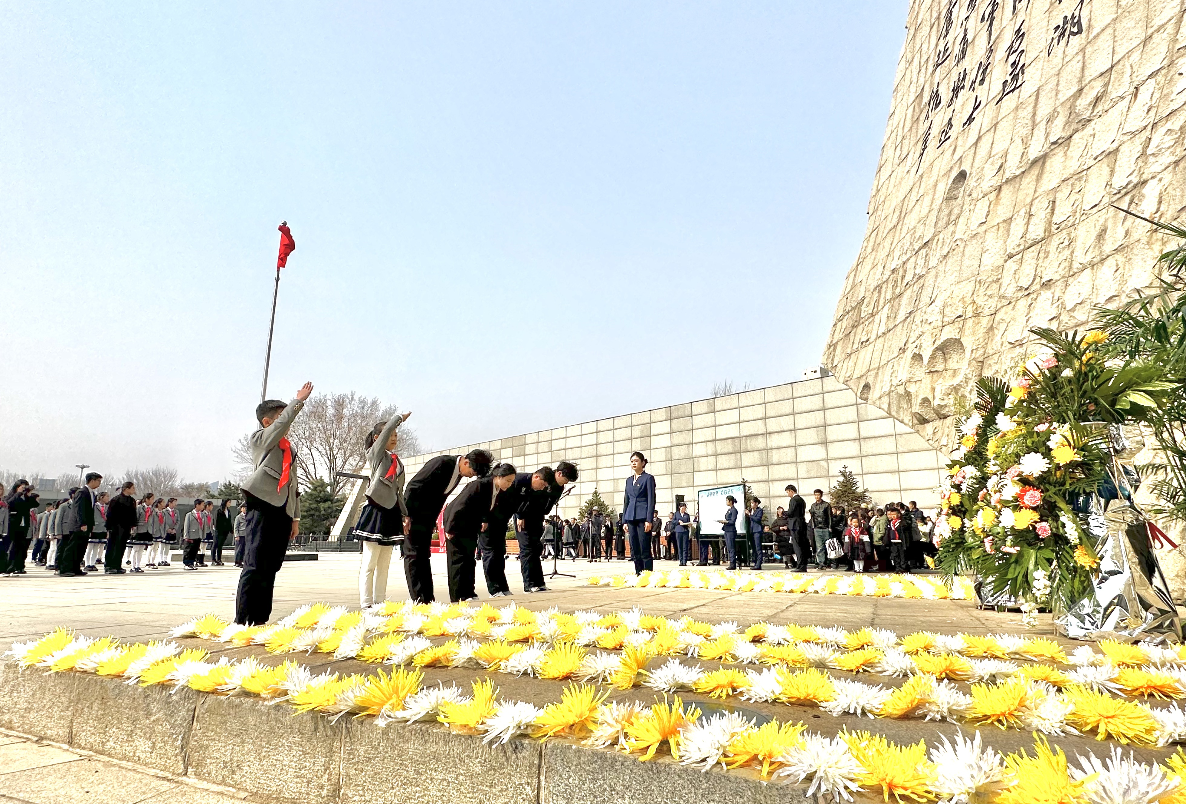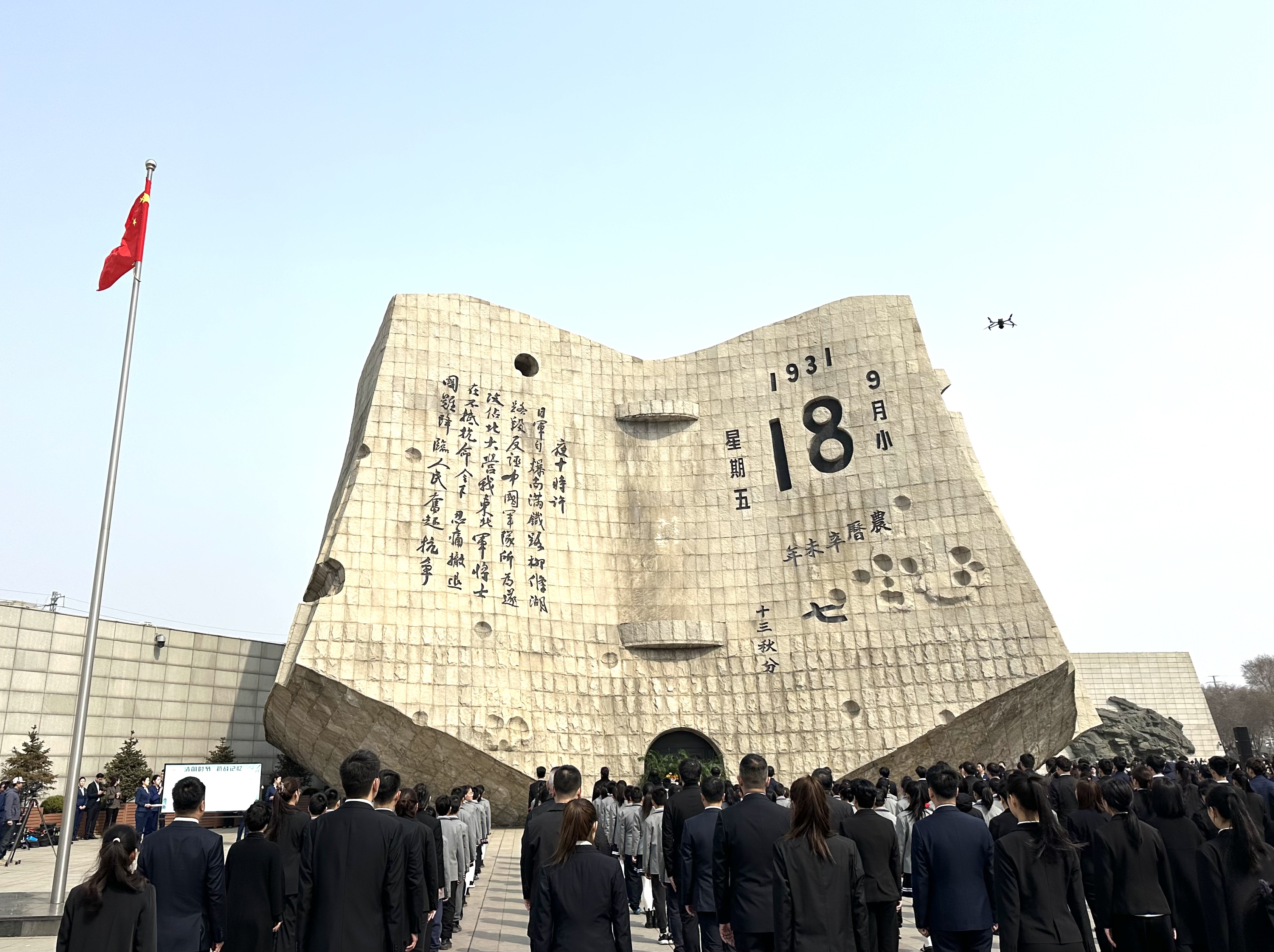 (大公文匯網記者 于珈琳 瀋陽報道)清明時節,追憶英烈。一場莊重肅穆的清明節主題銘記活動今日(4日)上午在遼寧瀋陽「九·一八」歷史博物館的殘歷碑廣場舉行,瀋陽共青團、青少年代表以及社會各界人士共200餘人參與追思活動,以莊重儀式致敬英烈。當日上午十時,各界代表肅立殘歷碑前,齊唱國歌並默哀致敬。社會各界代表與青年勞模、學生代表共同敬獻花籃,全體人員隨後依次為英烈獻花,以素雅花束寄託深切哀思。