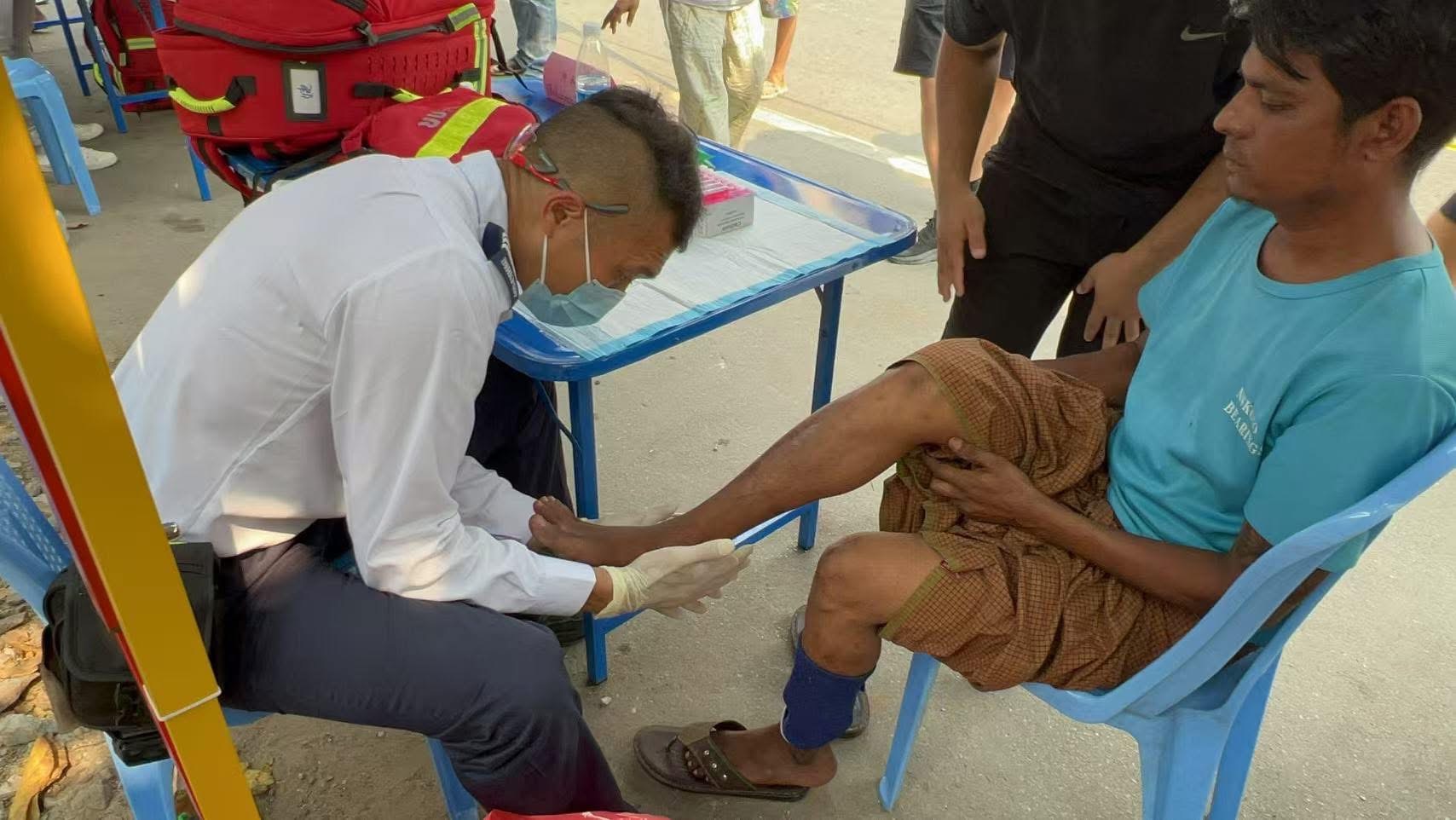 大公文匯全媒體報道,保安局今日(4日)在社交平台發布圖文表示,緬甸地震災情嚴重,今日特區救援隊便聯同國家救援隊在災區設置帳篷,為災民義診。