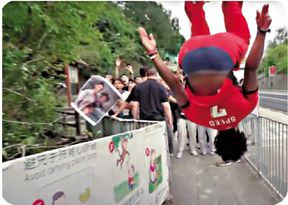 「甲亢哥」快閃港九多個地點期間,吸引大批粉絲追逐跟隨,他所到之處都有人找他合照及索取簽名,下午直播乘搭港鐵由上環站到天后站時,車站被人群擠得水洩不通,其間疑有人在車站跳閘逃票,天后站內有閘機更疑被撞毀。