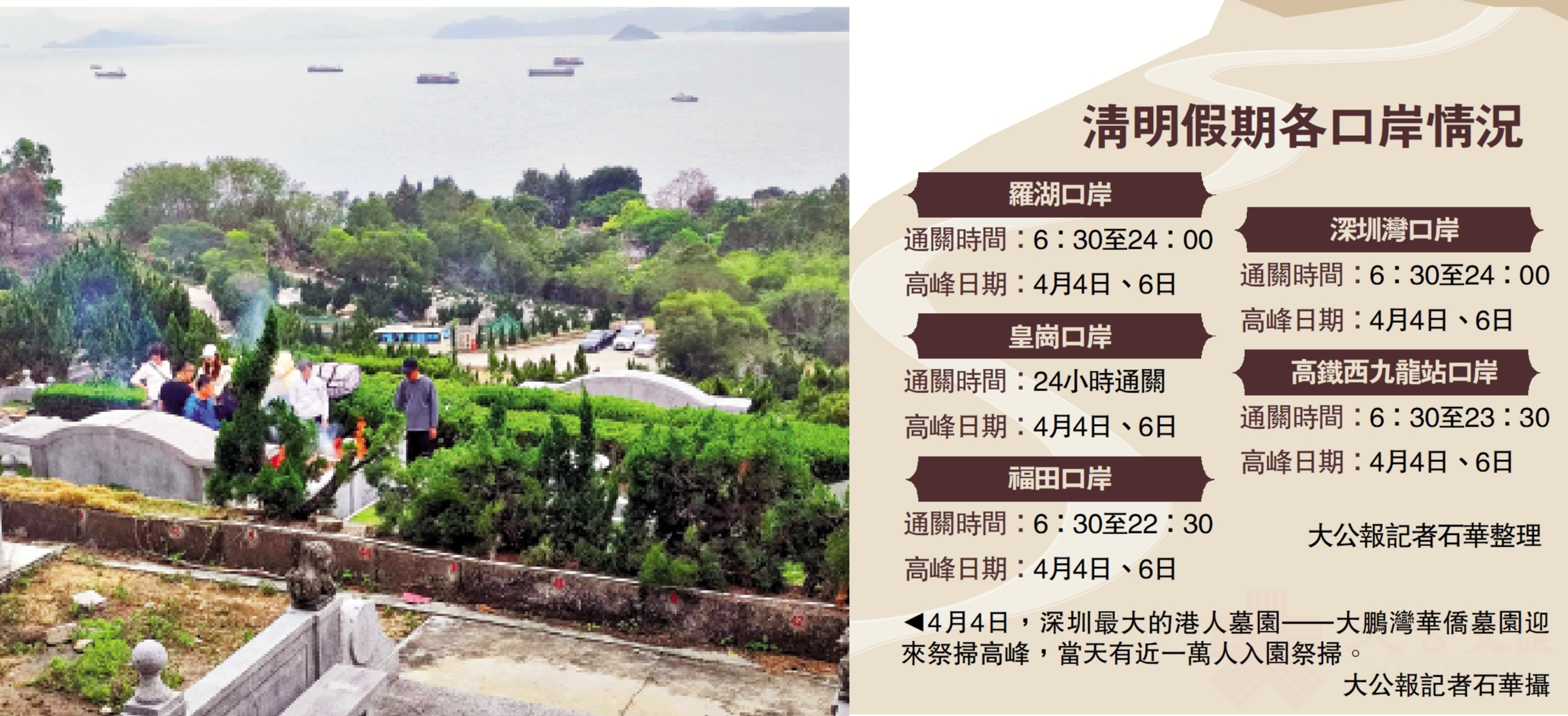 (大公報記者 石華 深圳報道)4月4日是清明節。據深圳市民政局消息,深圳各墓園累計接待市民超20萬人次。作為深圳最大的港人墓園—大鵬灣華僑墓園迎來祭掃高峰,清明節當天有近一萬人入園祭掃。