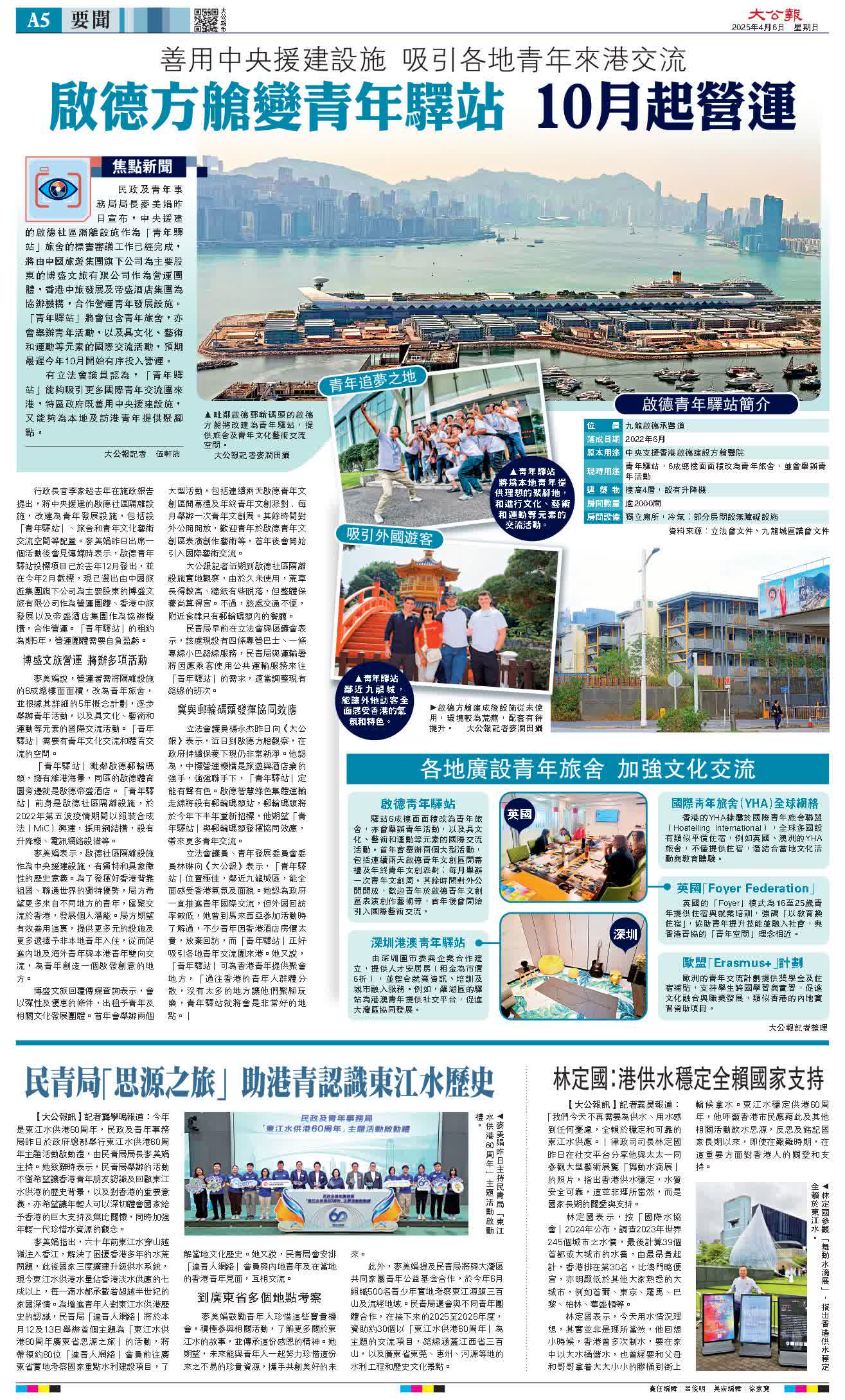 立法會議員楊永杰昨日向《大公報》表示,近日到啟德方艙觀察,在政府持續保養下現仍非常新淨。他認為,中標營運機構是旅遊與酒店業的強手,強強聯手下,「青年驛站」定能有聲有色。啟德智慧綠色集體運輸走線將設有郵輪碼頭站,郵輪碼頭將於今年下半年重新招標,他期望「青年驛站」與郵輪碼頭發揮協同效應,帶來更多青年交流。