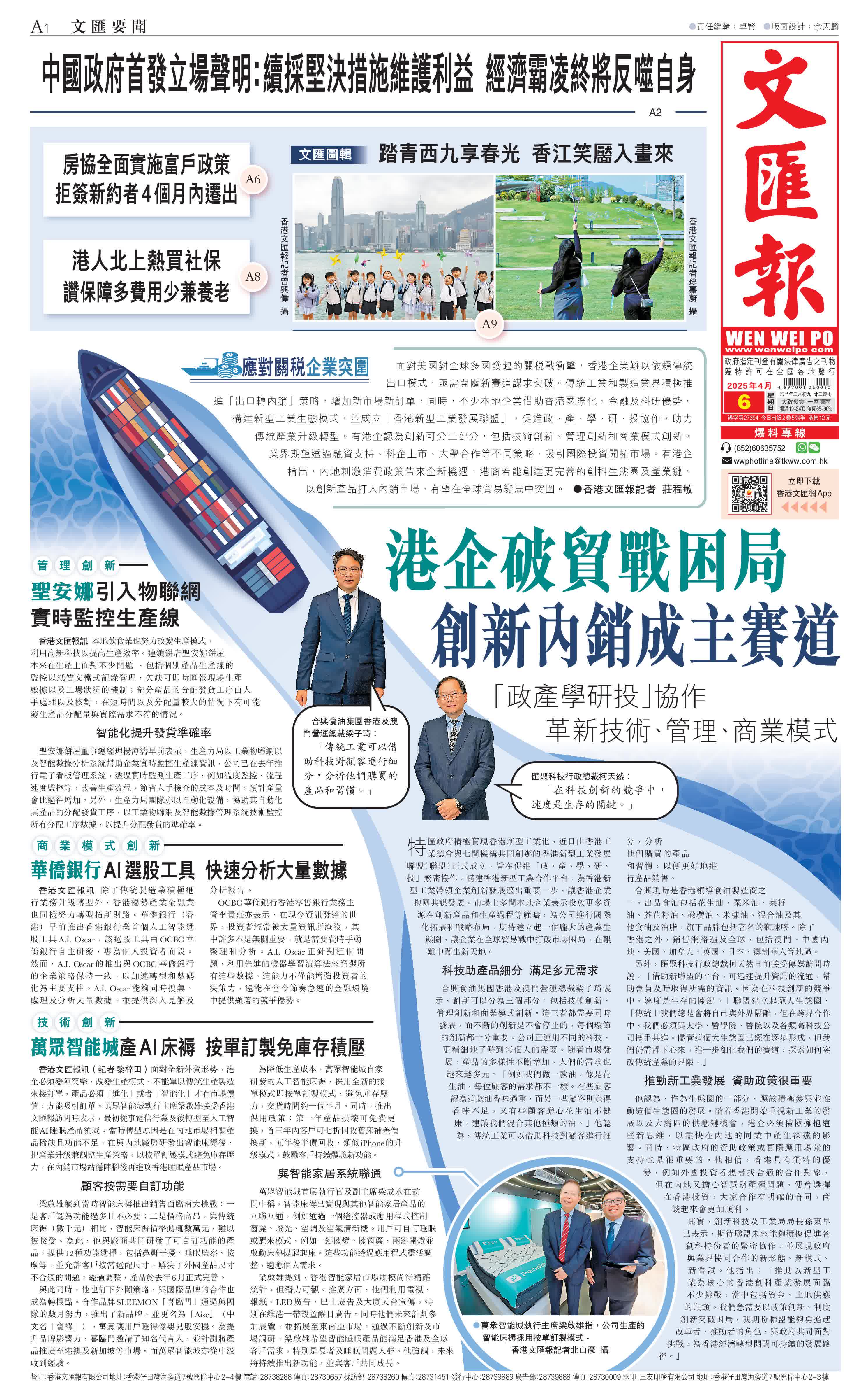 (香港文匯報記者 莊程敏)面對美國對全球多國發起的關稅戰衝擊,香港企業難以依賴傳統出口模式,亟需開闢新賽道謀求突破。傳統工業和製造業界積極推進「出口轉內銷」策略,增加新市場新訂單,同時,不少本地企業借助香港國際化、金融及科研優勢,構建新型工業生態模式,並成立「香港新型工業發展聯盟」,促進政、產、學、研、投協作,助力傳統產業升級轉型。有港企認為創新可分三部分,包括技術創新、管理創新和商業模式創新。業界期望透過融資支持、科企上市、大學合作等不同策略,吸引國際投資開拓市場。有港企指出,內地刺激消費政策帶來全新機遇,港商若能創建更完善的創科生態圈及產業鏈,以創新產品打入內銷市場,有望在全球貿易變局中突圍。