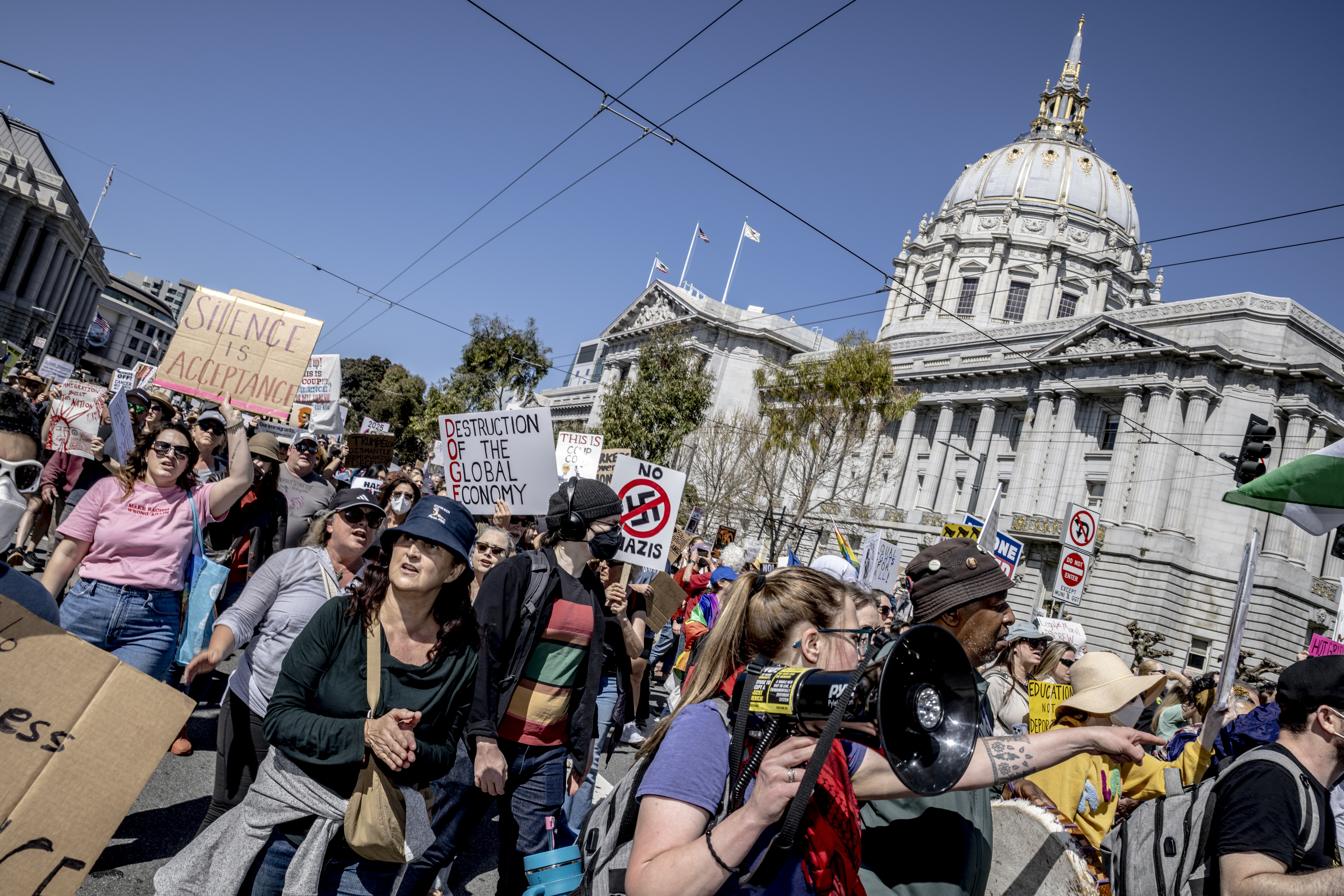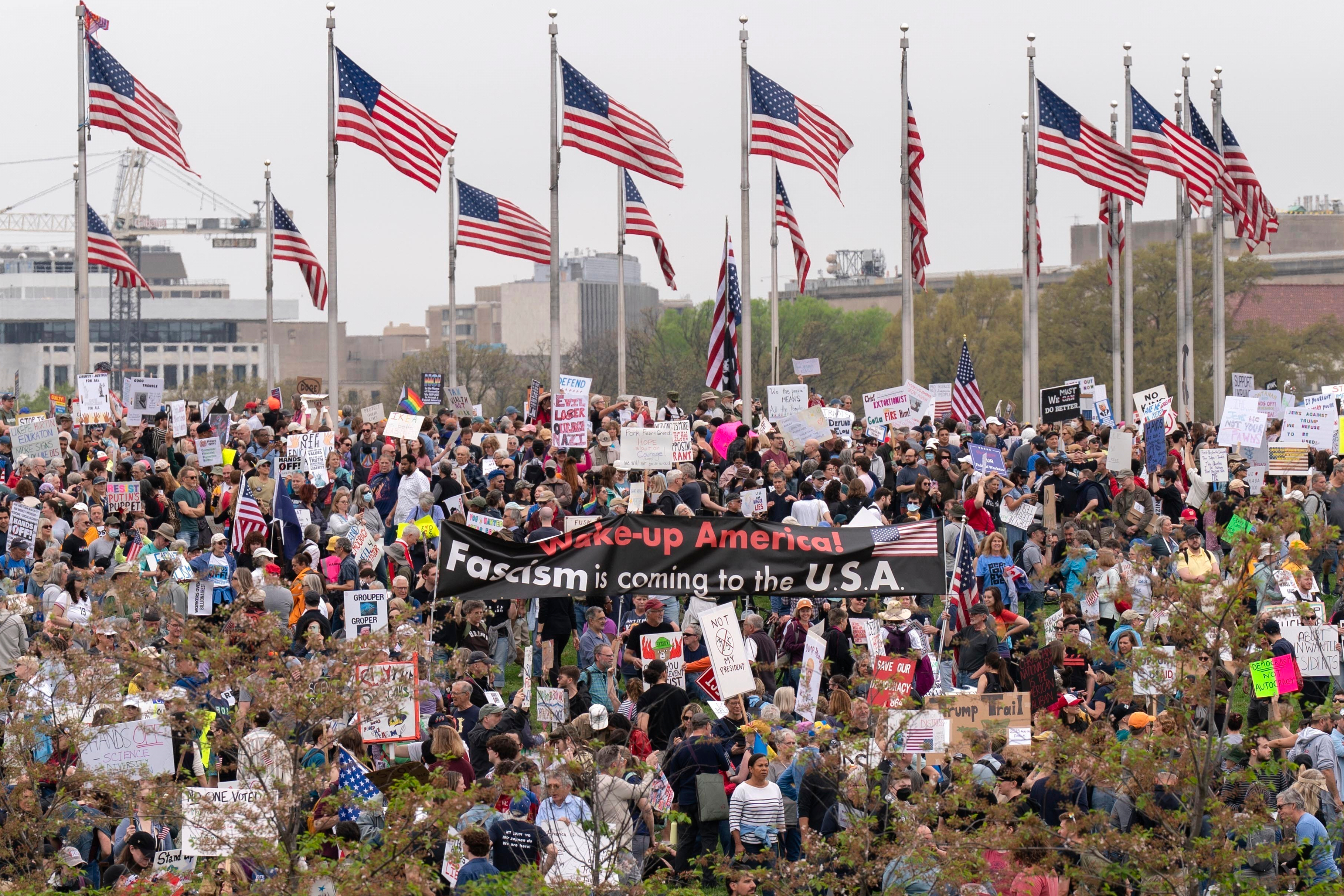 在首都華盛頓,示威活動組織者估計有超過2萬人參加位於國家廣場的集會。其他各大城市也有數千名反特朗普示威者聚集,並手持「別碰我們的民主」、「別碰我們的社會安全保障」等標語。