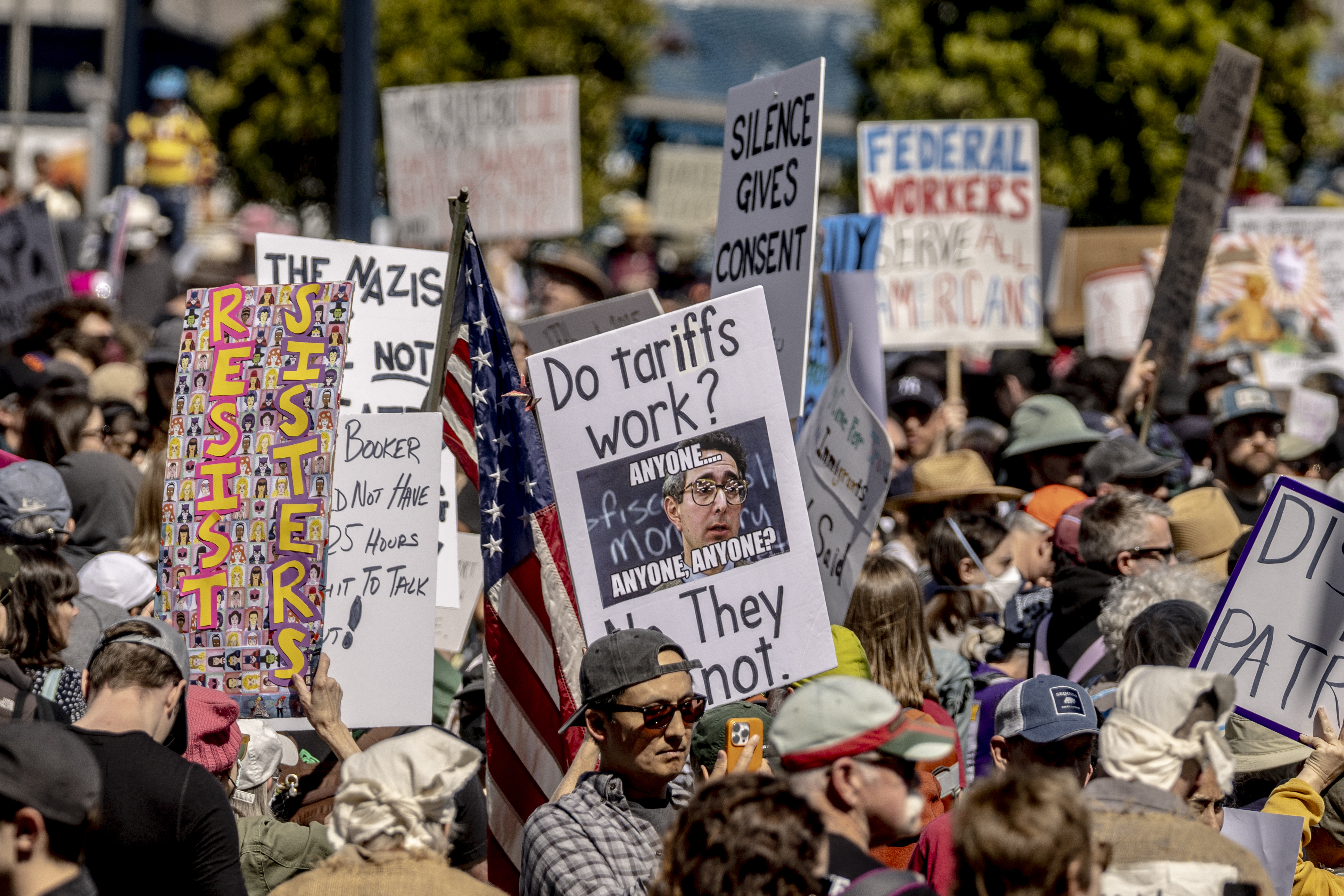 據報道,出席集會的民眾對特朗普政府有各種不滿,包括移民政策、削減政府規模、關稅等。
