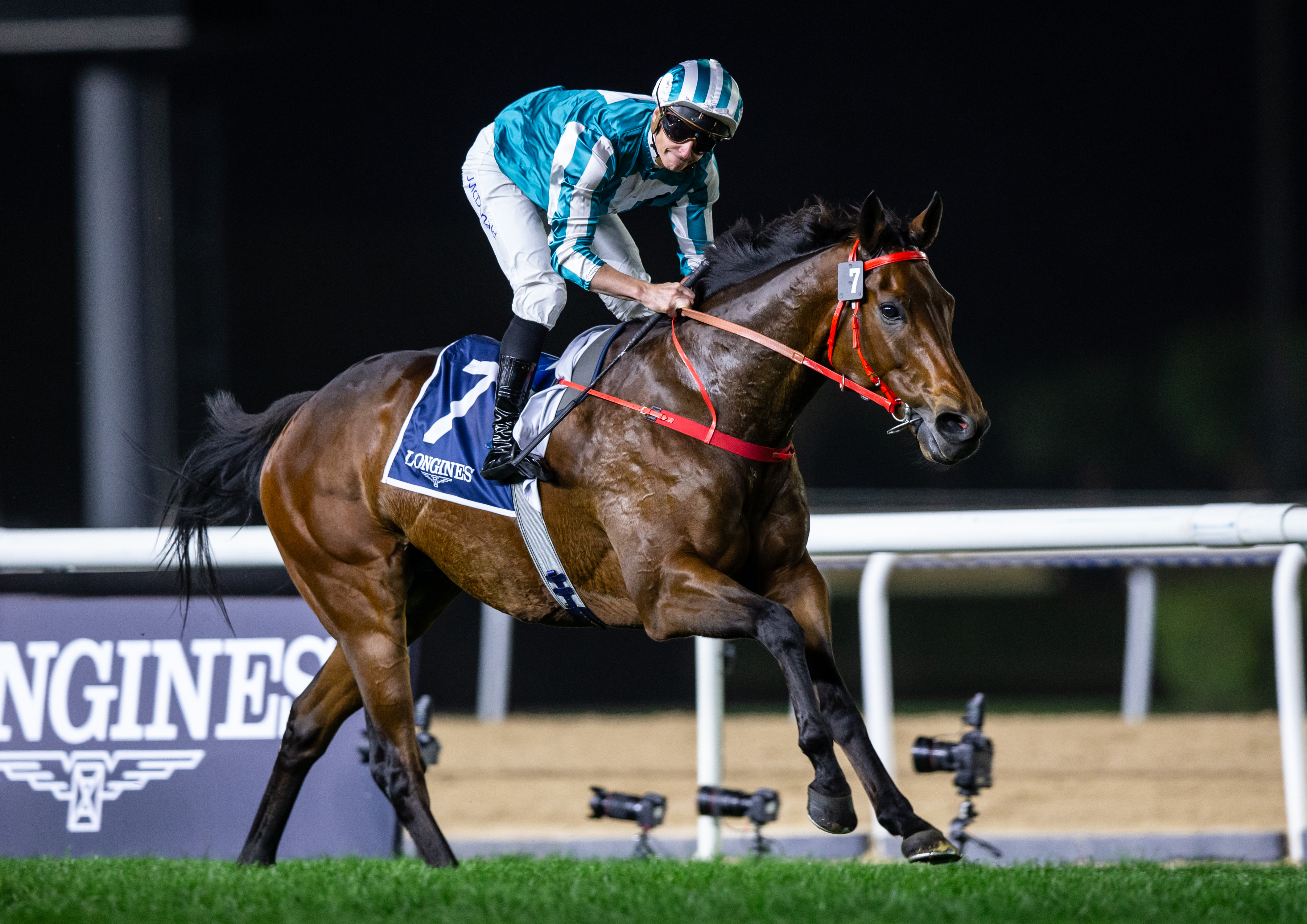 從去年12月中開展中東征程以來,「浪漫勇士」先在杜拜以破場地紀錄時間的佳績贏得一級賽傑貝哈特錦標(1800米),然後在一級賽沙特盃(1800米)首戰泥地賽事即取得亞軍。在今仗杜拜草地大賽中,「浪漫勇士」進入直路後一直領先外國群駒,直至最後一步才被日本代表「神志勇進」以一鼻位之先超越。