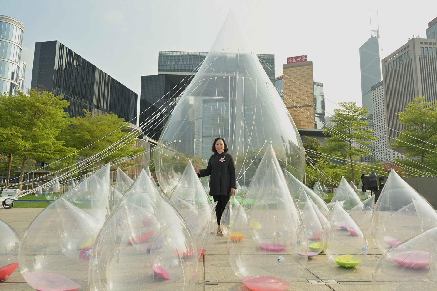 發展局局長甯漢豪認為今次展覽別具意義,亦讚賞藝術家的持續創意。她透露,整個展覽的水滴布局和數量在展期內會分階段變化,精彩作品陸續有來,大家一定要密切留意。