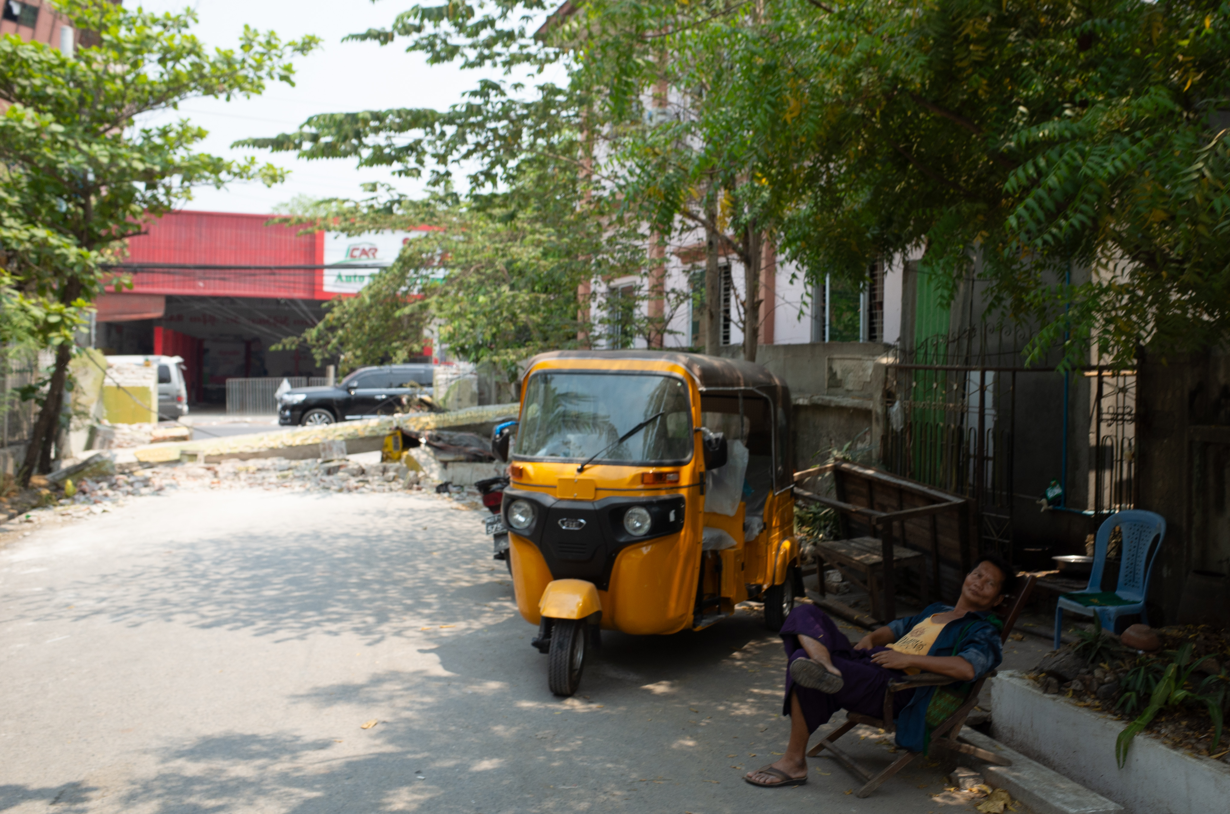 不過,經過多次幫自己做心理建設、心理準備,在當晚順利找到第3個翻譯後,我們最後決定在4月2日早上5點出發前往曼德勒。沿途我們看到公路有被損毀的痕跡,但緬甸工人在很快地搶修,因為這條連接仰光和曼德勒的公路非常重要。經過13個小時漫長的路程到達曼德勒後,我們覺得需要先拍拍這個城市地震後的環境,所以我們去採訪了一些無家可歸的人。他們的家有些已經被嚴重損壞,有些有破損但沒有倒塌,但他們也害怕,所以暫時住在街上,先渡過這個難關。