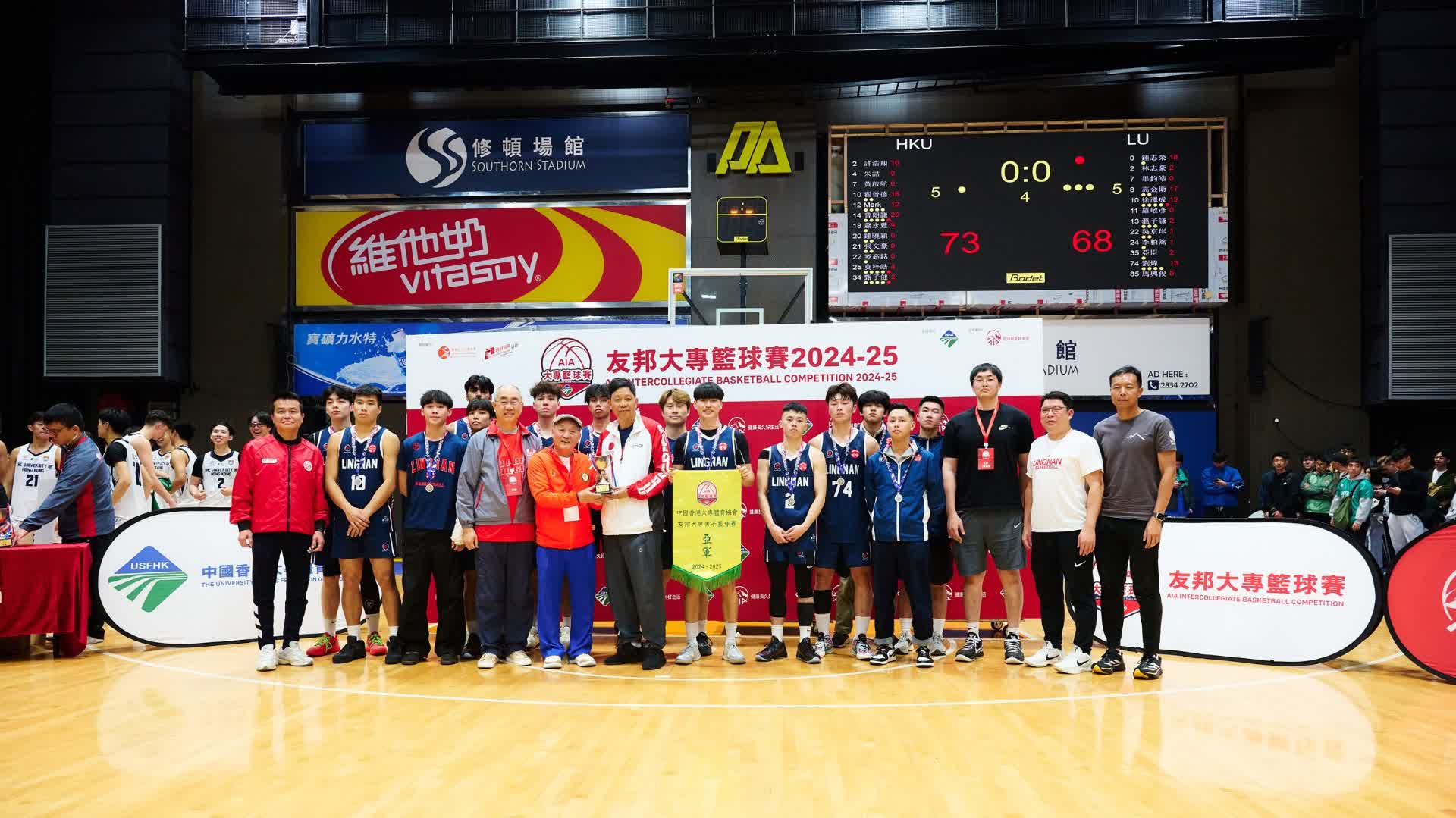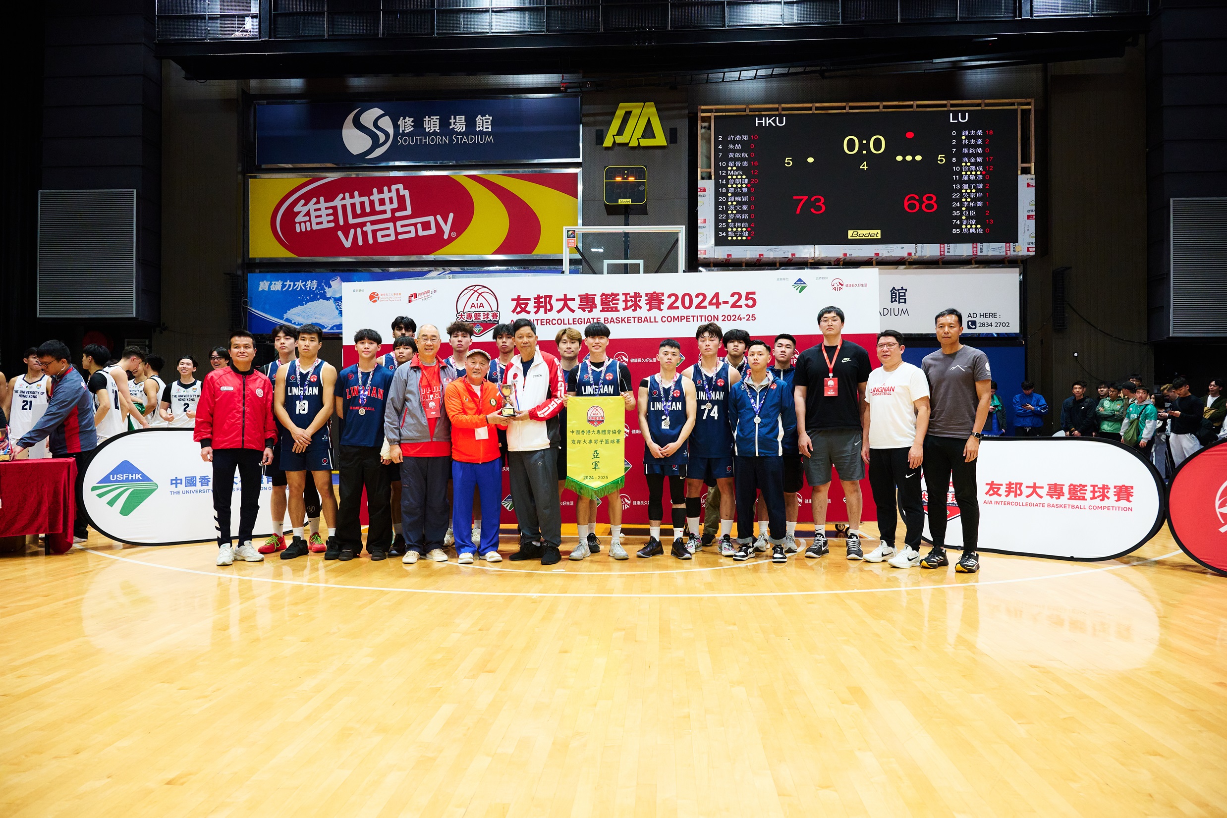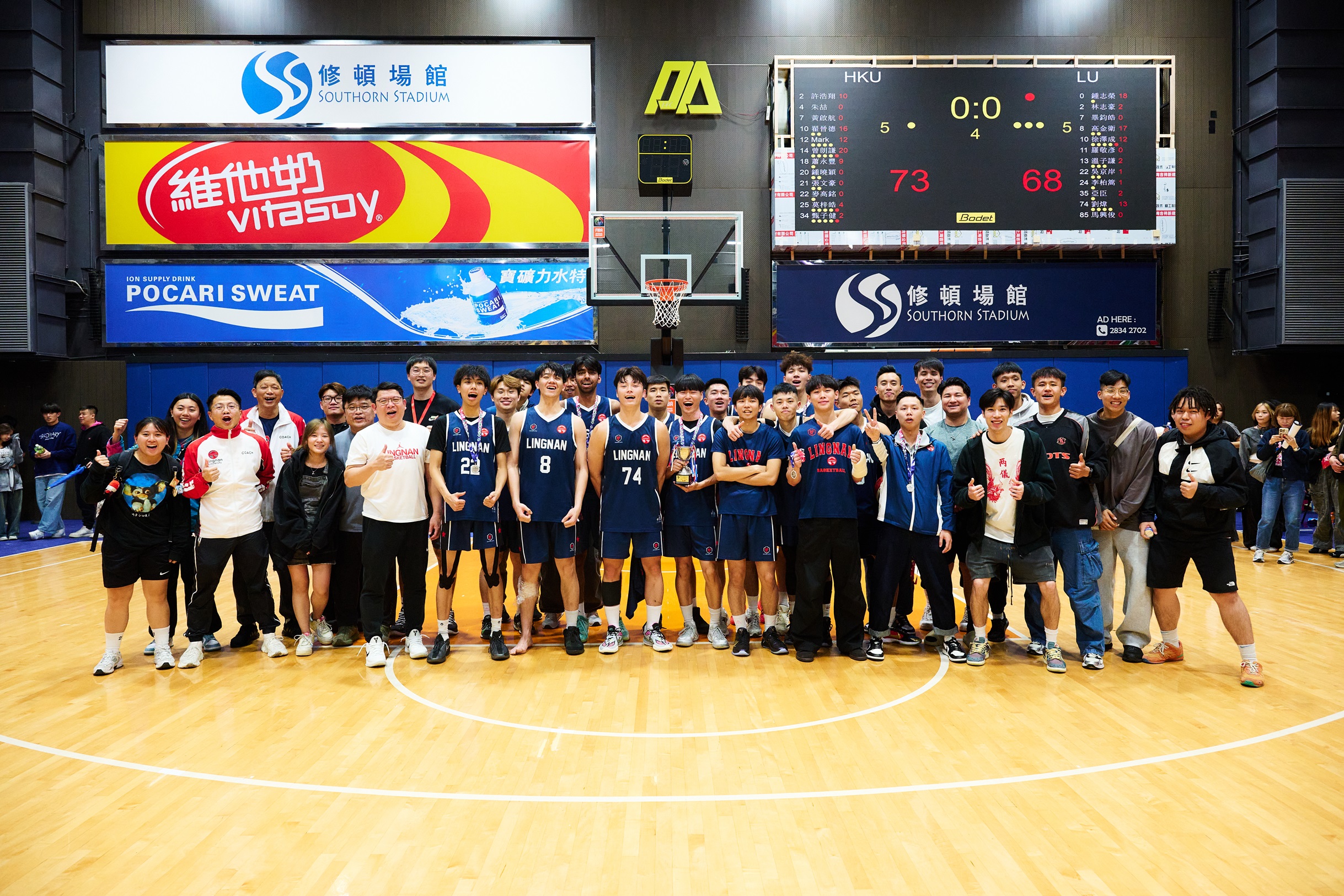 在一眾嶺大校友及球迷的熱烈支持下,嶺大男籃在冠軍戰開局即鬥志激昂,雖然首兩節皆落後,但隊員們仍緊咬比分,節節進逼,第三節尾段曾反超前【49比47】,將分差縮小至3分進入第四節。第四節一開始,雙方火力全開,戰況緊湊,全場吶喊聲不斷,終以【68比73】惜敗,但仍創下校史最佳戰績,雖敗猶榮。