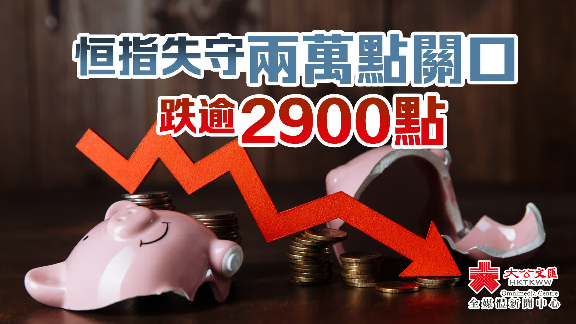 大公文匯全媒體報道,今日(7日)下午2時許,港股失守2萬點,為今年1月24日以來首次。恒生指數較早時報19868點,跌2981點,跌幅逾13%。