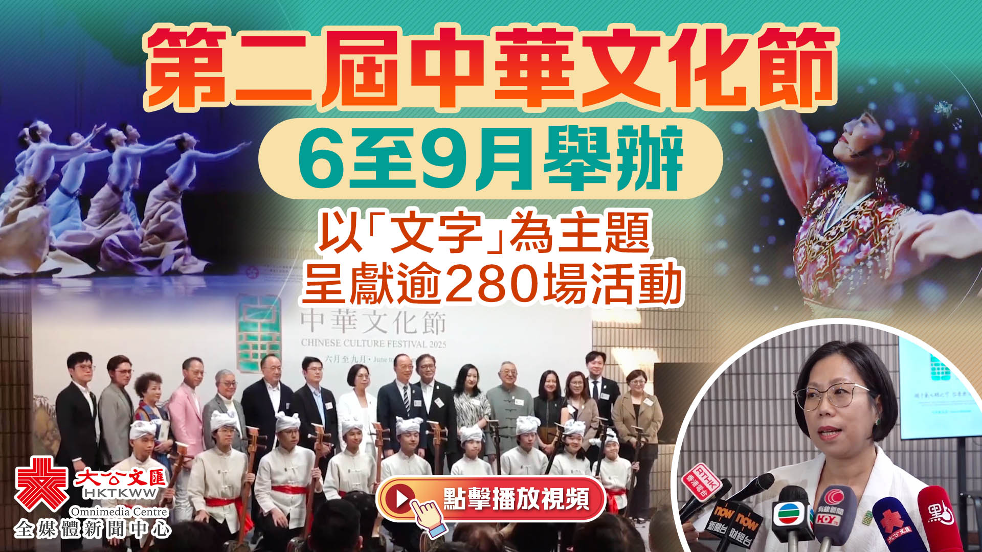 (大公文匯全媒體 記者 陳子萌)第二屆中華文化節將於6月至9月正式舉行,今屆中華文化節以「文字」為主題,邀請逾3000位國內外的藝術家,以及超過150個藝術團體及機構參與。屆時將有逾280場節目落地香港,預計將吸引超百萬人次參與。