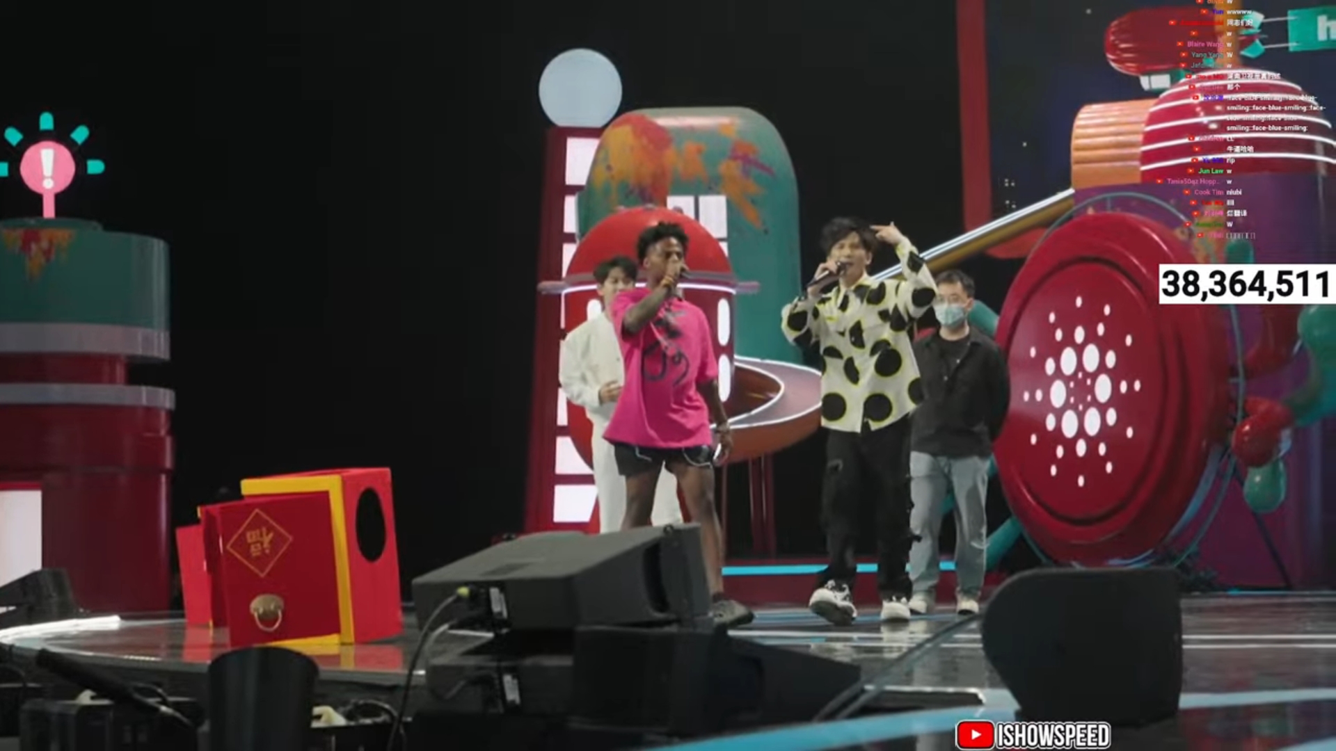 「甲亢哥」和大張偉還一起合唱歌曲《陽光彩虹小白馬》,引發全場合唱。不少網友紛紛直呼:「夢幻同框!」