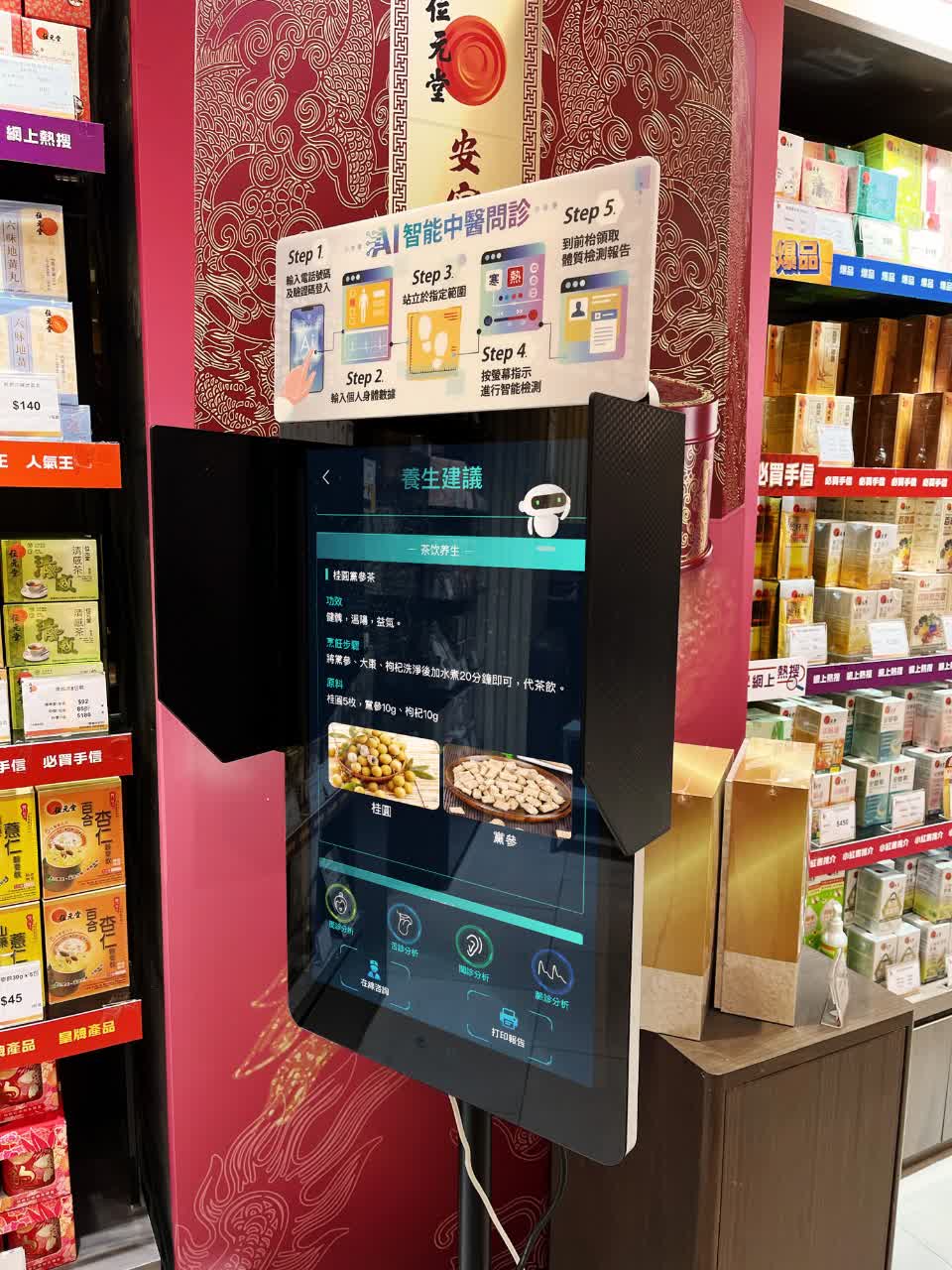 位元堂自3月28日起,於銅鑼灣波斯富街、旺角彌敦道、尖沙咀金馬倫道、沙田新城市廣場及九龍灣德福廣場共5間核心門店率先試行引入由中預醫學嶄新研發的中醫體質辨識儀測試版。中醫體質辨識儀將中醫「望、聞、問、切」四診智慧數碼化,通過雲端的智能中醫體質辨識演算法,結合二十四節氣,評估顧客的中醫體質,讓中醫保健從「經驗醫學」走向「數據驅動」的精準健康管理。