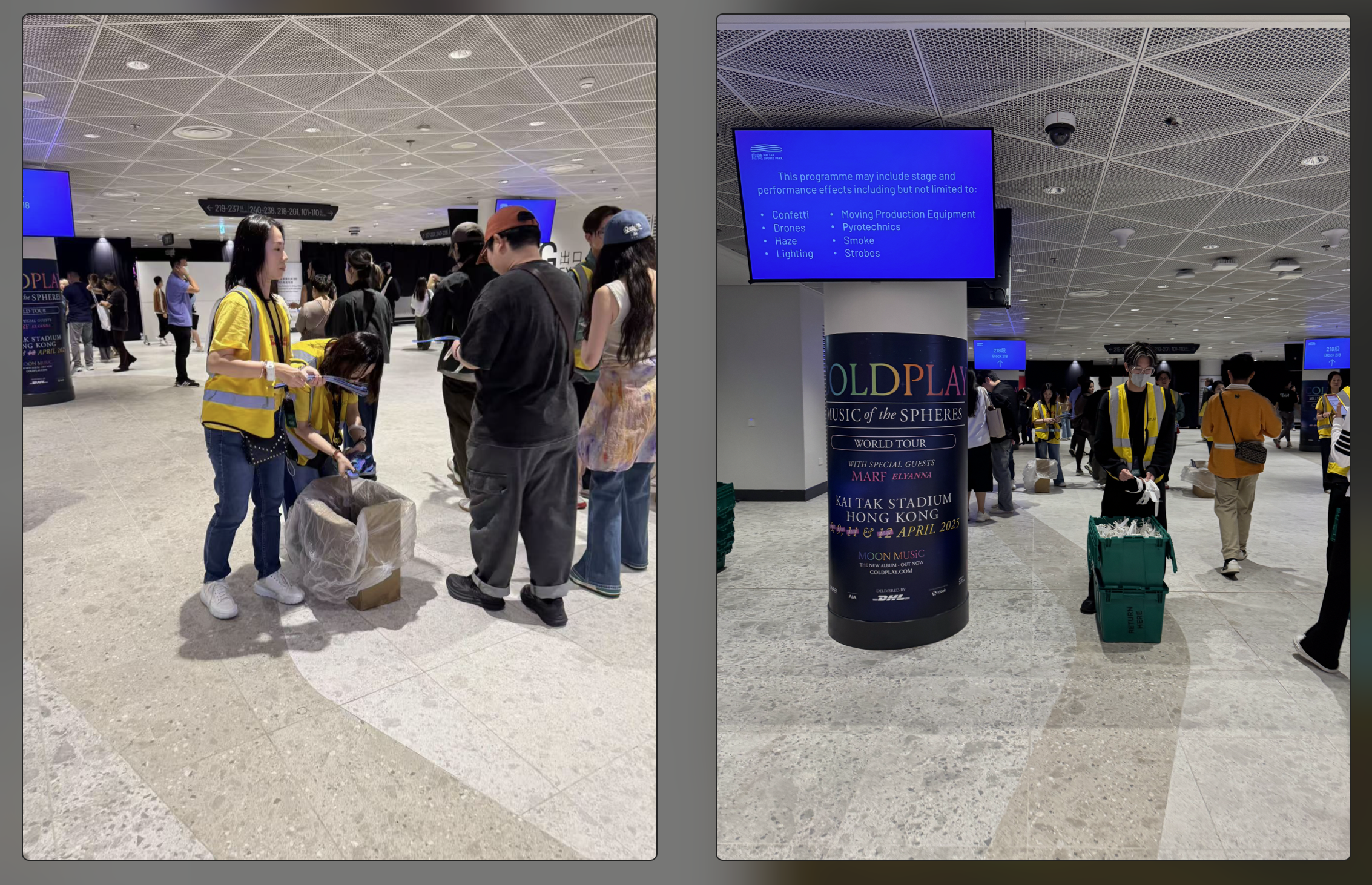 大公文匯全媒體報道,英國樂隊Coldplay今晚(8日)起在啟德主場館舉行4場演唱會,這是啟德主場館進行的首個大型演唱會。在剛過去的周末,在啟德體藝館舉行的CHILL CLUB頒獎禮安檢混亂,令社會大眾關注今晚Coldplay安檢會否「重蹈覆轍」。大公文匯全媒體特別邀請了一位從內地來港看演唱會的歌迷楊小姐,分享自己的安檢體驗,楊小姐指,安檢非常順利,體驗很好。