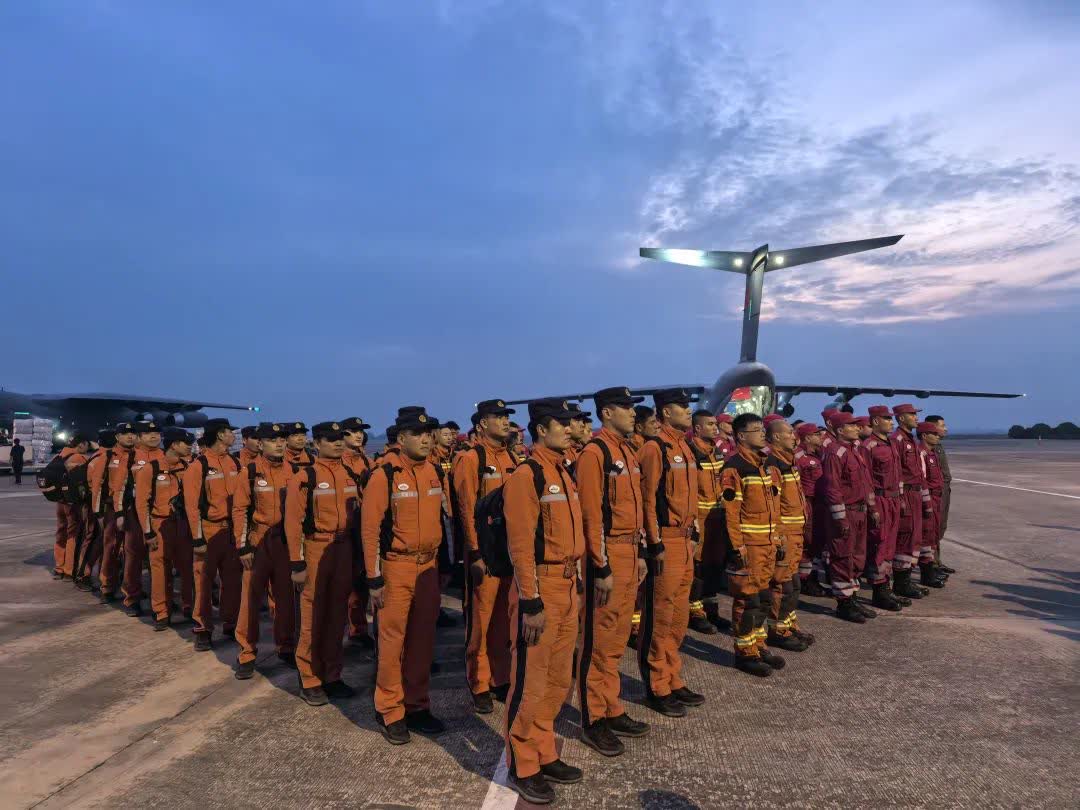 據新華社報道,4月9日上午,赴緬甸開展地震救援的中國救援隊、中國國際救援隊和中國香港特區救援隊完成國際救援任務,乘坐4架中國空軍運-20飛機從內比都啟程回國。