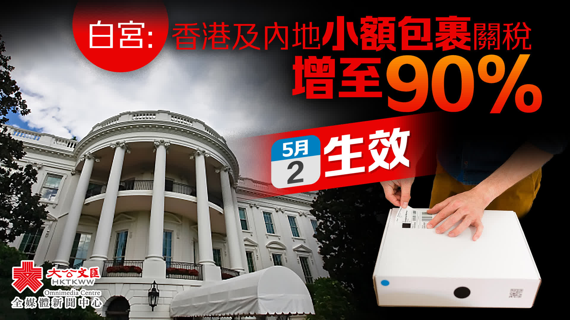 大公文匯全媒體報道,美國白宮8日宣布,將中國內地和香港的小包裹徵稅額翻三倍,即從貨值的30%增至90%,5月2日起生效。