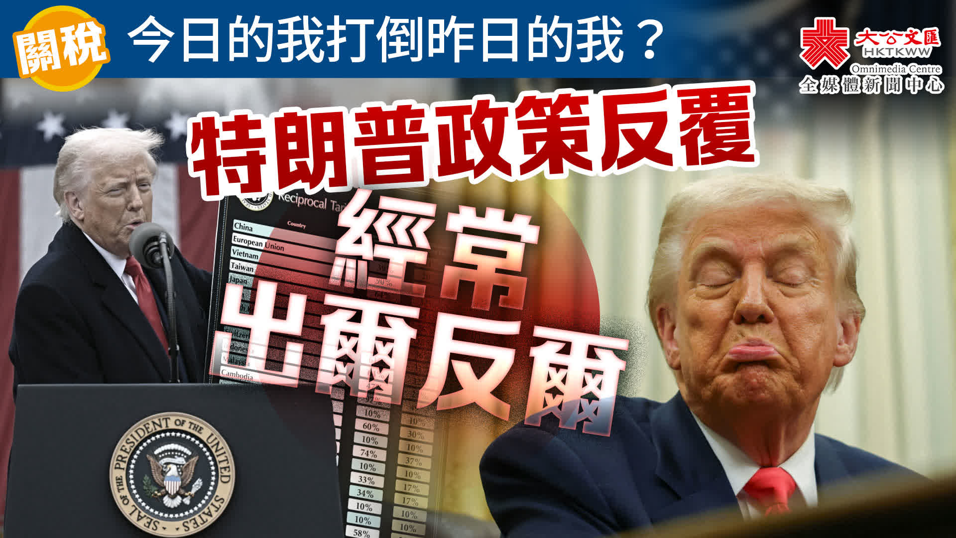 大公文匯全媒體記者整理報道,美國總統特朗普極力推行單邊主義和孤立主義,在全世界到處點火,引燃貿易戰,並將矛頭重點對準了中國。美國日前宣布對華加徵34%「對等關稅」,中國「11箭齊發」彰顯反制決心。特朗普7日威脅稱,若中國不取消反制措施,會從4月9日起對中國徵收50%額外關稅,並終止所有中美談判。儘管特朗普態度「企硬」,事情看似鐵板釘釘,但其實特朗普在兩屆任內都經常策略性變臉,在關稅政策、貿易協定談判等方面出爾反爾。因此,這份「天價關稅」將持續多久仍是未知數。