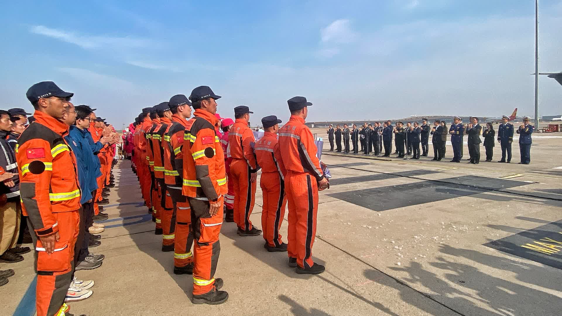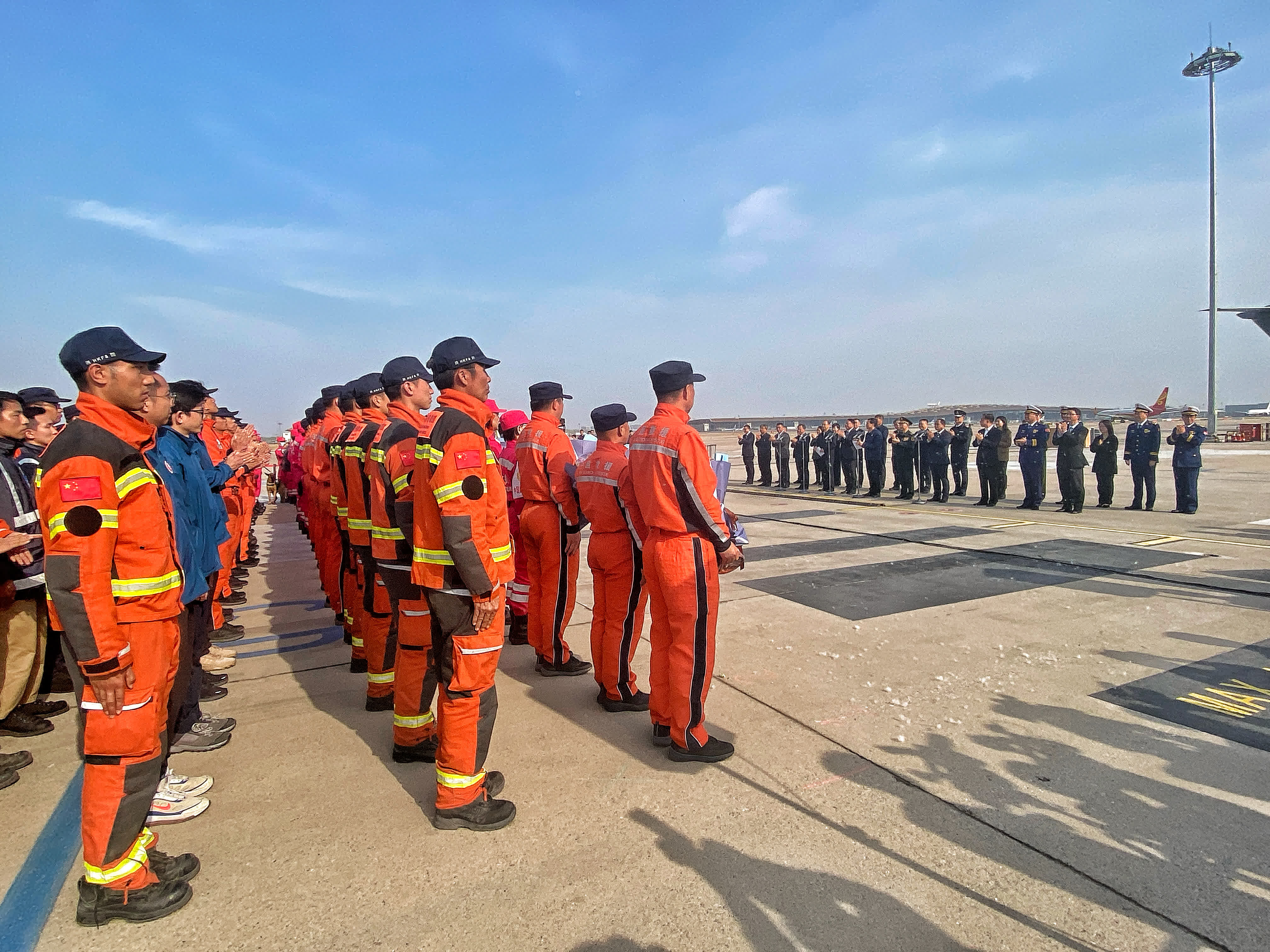 緬甸駐華大使丁貌瑞、國家國際發展合作署副署長劉俊峰、香港特區政府政務司司長陳國基前往迎接並致辭。外交部、應急管理部、國務院港澳辦、中國民航局、國家消防救援局、中國地震局等單位負責人和軍隊有關單位領導參加。