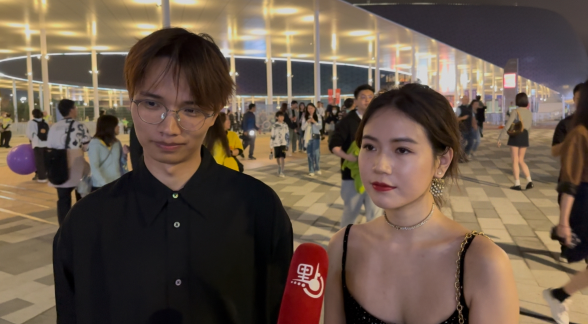 身穿亮片短裙的嚴太和先生一起來看演出,她大讚主場館內音響效果非常好,並說自己已經跟唱到聲音沙啞。不過,她表示在入場安檢前排隊的排隊過程略顯混亂,所幸入場後暢通無阻。嚴太還表示,沒有打開天幕放煙花有些遺憾。交通方面,嚴太夫婦選擇自駕前往場館,車輛停在附近的商場,下車後步行大概十分鐘就可到達場館。