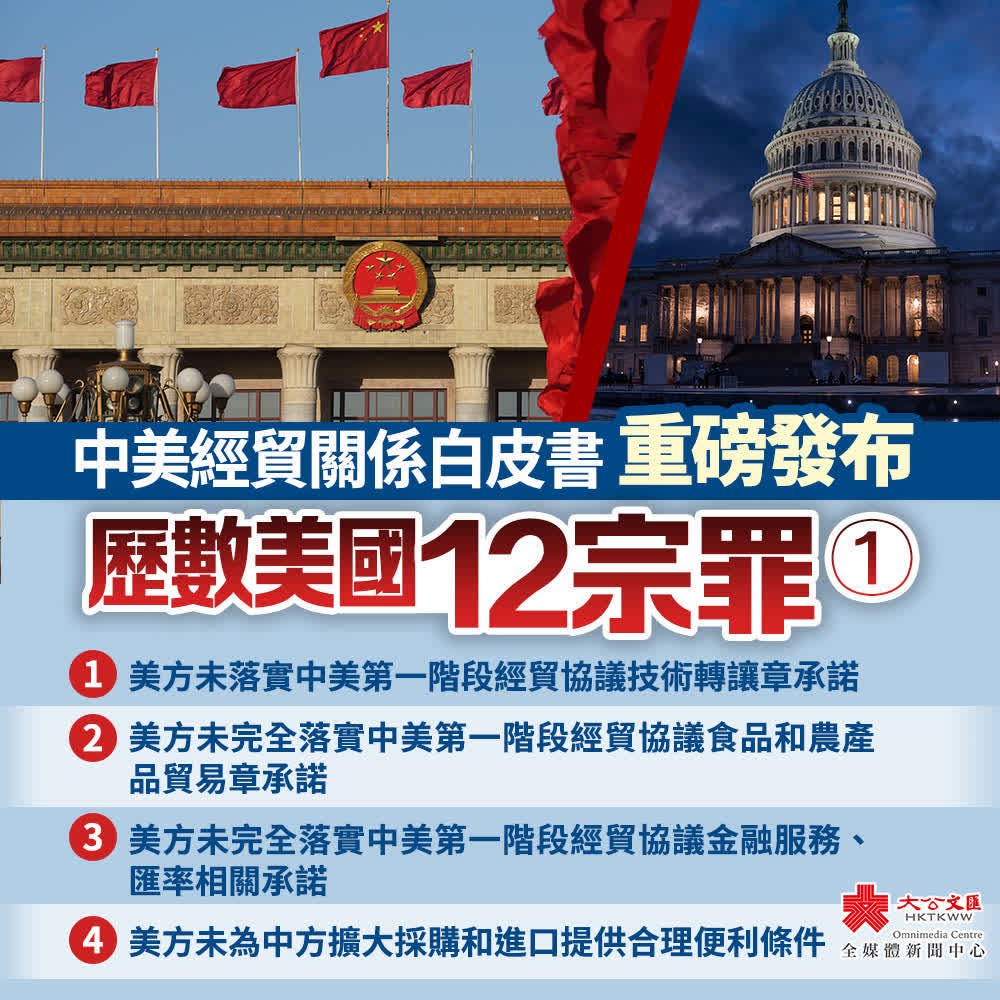 (大公報記者 朱燁、凱雷 北京報道)中國國務院新聞辦公室9日發布《關於中美經貿關係若干問題的中方立場》白皮書,澄清中美經貿關係事實,闡明中方對相關問題的政策立場。