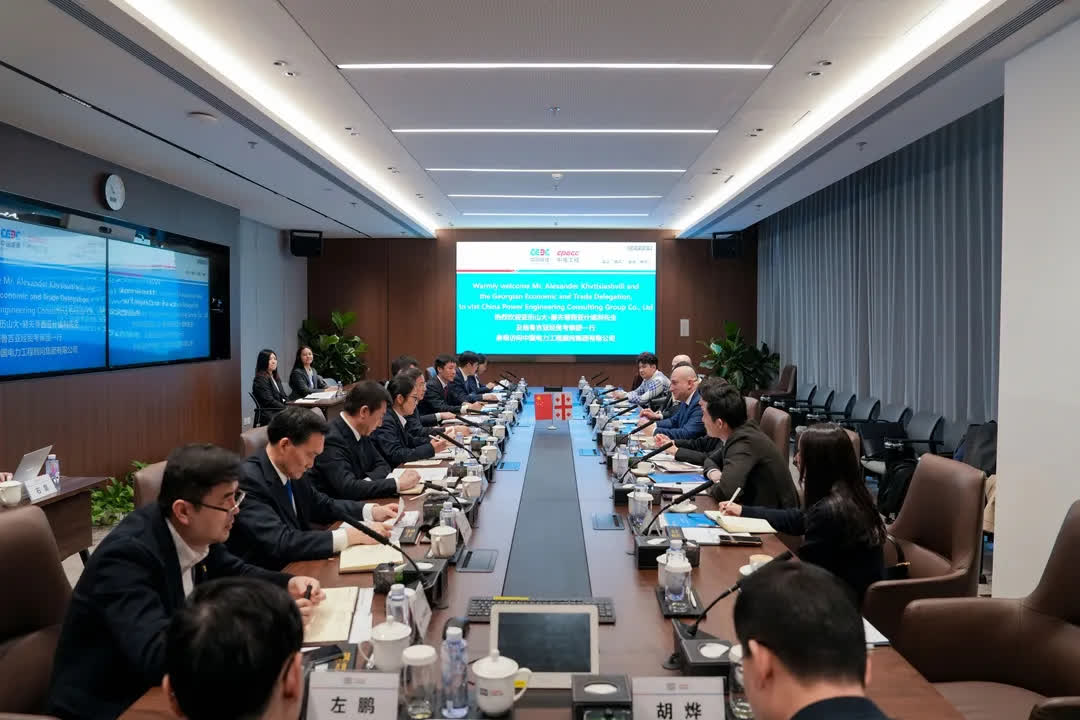 羅必雄對赫夫蒂西亞什維利一行到訪表示歡迎,並簡要介紹了中電工程發展歷程、業務板塊及經營業績等情況。他表示,作為位列全球第二、中國第一的工程設計企業,中電工程堅持全生命周期的工程服務商和以新能源為主體的新型電力系統投資商「兩商」定位,具有能源領域規劃設計、工程建設、投資運營等領域的全產業鏈優勢。中電工程一直以來重視格魯吉亞市場,已在格魯吉亞及其周邊國家執行了多個項目,雙方已建立了深厚的合作基礎。中電工程高度認可格魯吉亞的區位優勢和營商環境,願積極參與格魯吉亞能源領域建設與投資,希望憑藉公司在能源電力領域的豐富經驗和領先技術,為格魯吉亞綠色能源開發、國內電網基礎設施升級、與周邊國家互聯互通、以及社會經濟發展提供助力。