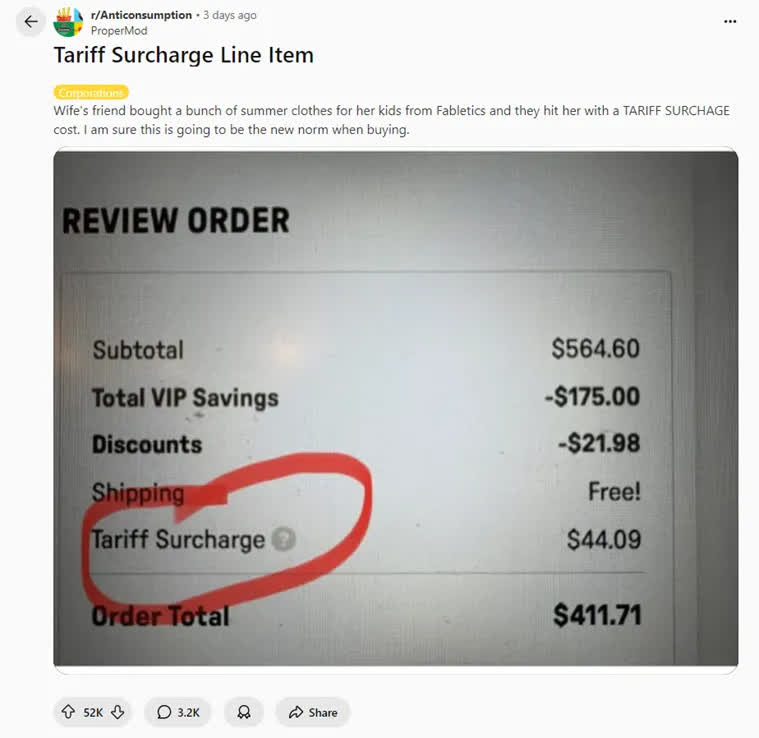 儘管支付關稅附加費的過程並不愉快,但許多美國網民都對單列這項費用的賬單表示歡迎。還有人建議關稅附加費改名叫「美國加徵的關稅附加費」,讓美國消費者看清楚這個成本到底是因為誰產生的。