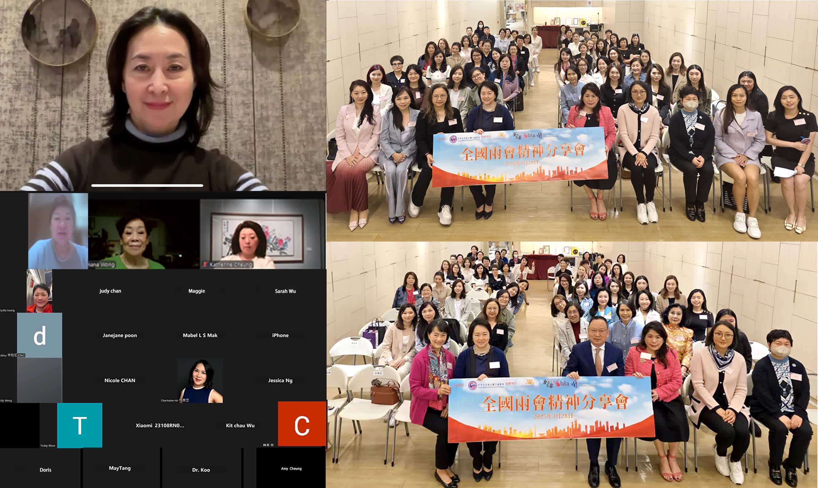 全國兩會早前順利閉幕,3月28日,香港各界婦女聯合協進會在香港婦協郭得勝服務中心舉辦「全國兩會精神分享會」,邀請全國政協常務委員何超瓊、王惠貞、施榮懷,港區全國人大代表陳仲尼、文頴怡擔任主講嘉賓。香港婦協理事會成員、名譽會長、團體會員、會員及友好團體代表出席現場會議,活動同時透過線上平台直播,供各界婦女同步參與。