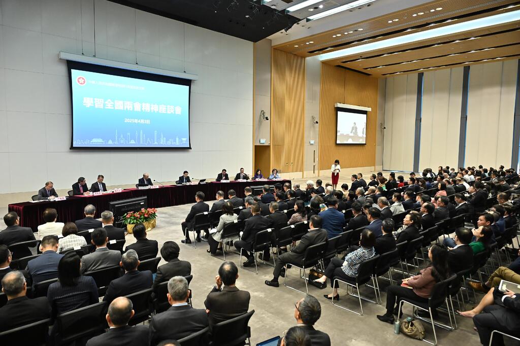 第十四屆全國人民代表大會(全國人大)第三次會議和中國人民政治協商會議第十四屆全國委員會(全國政協)第三次會議(全國兩會)在今年三月圓滿閉幕。香港特別行政區(特區)政府日前在政府總部舉辦學習全國兩會精神座談會,讓與會者更深入了解全國兩會的重要內容,以及其對香港特區的重要意義。