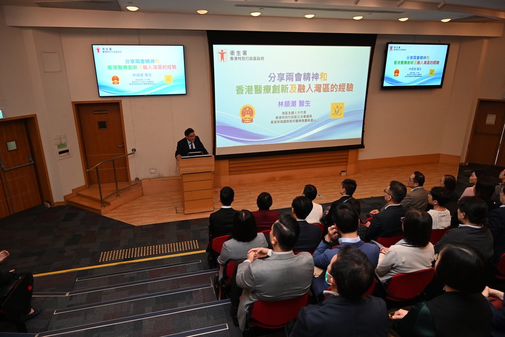 此外,衞生署亦邀請了港區全國人大代表林順潮醫生,為衞生署的人員分享兩會精神,一同探討香港醫療界別在國家現代化建設的角色和可作出的貢獻,推動新質生產力,合力打造香港成為國家中醫藥國際化的橋頭堡和高端醫療人才聚集高地。