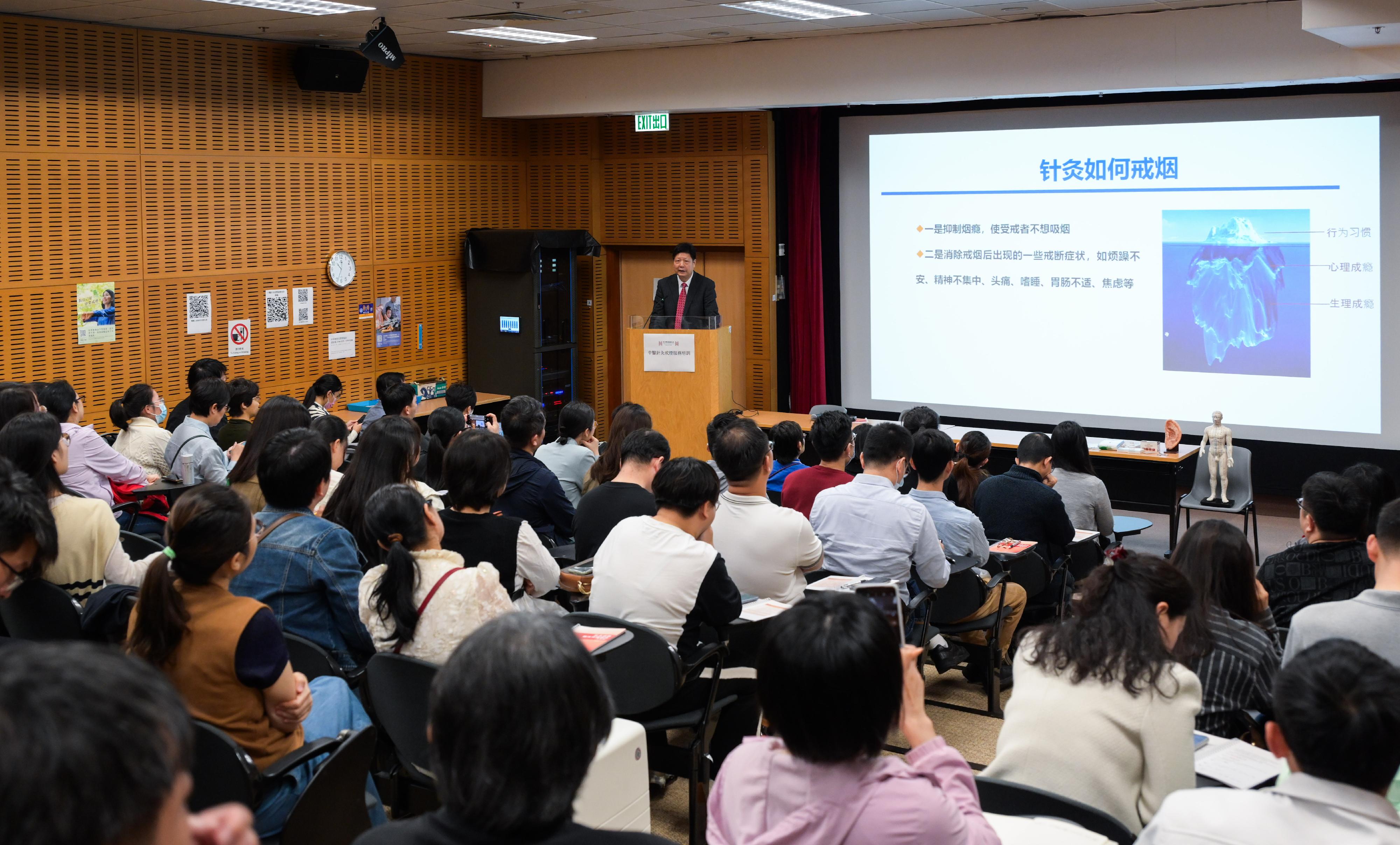 衞生署控煙酒辦公室(控煙酒辦)今日(四月十一日)舉辦中醫針灸戒煙服務培訓班,介紹透過中醫針灸協助吸煙人士戒煙的最新研究和實務方案,吸引內地和港澳約100名中醫師踴躍參與。