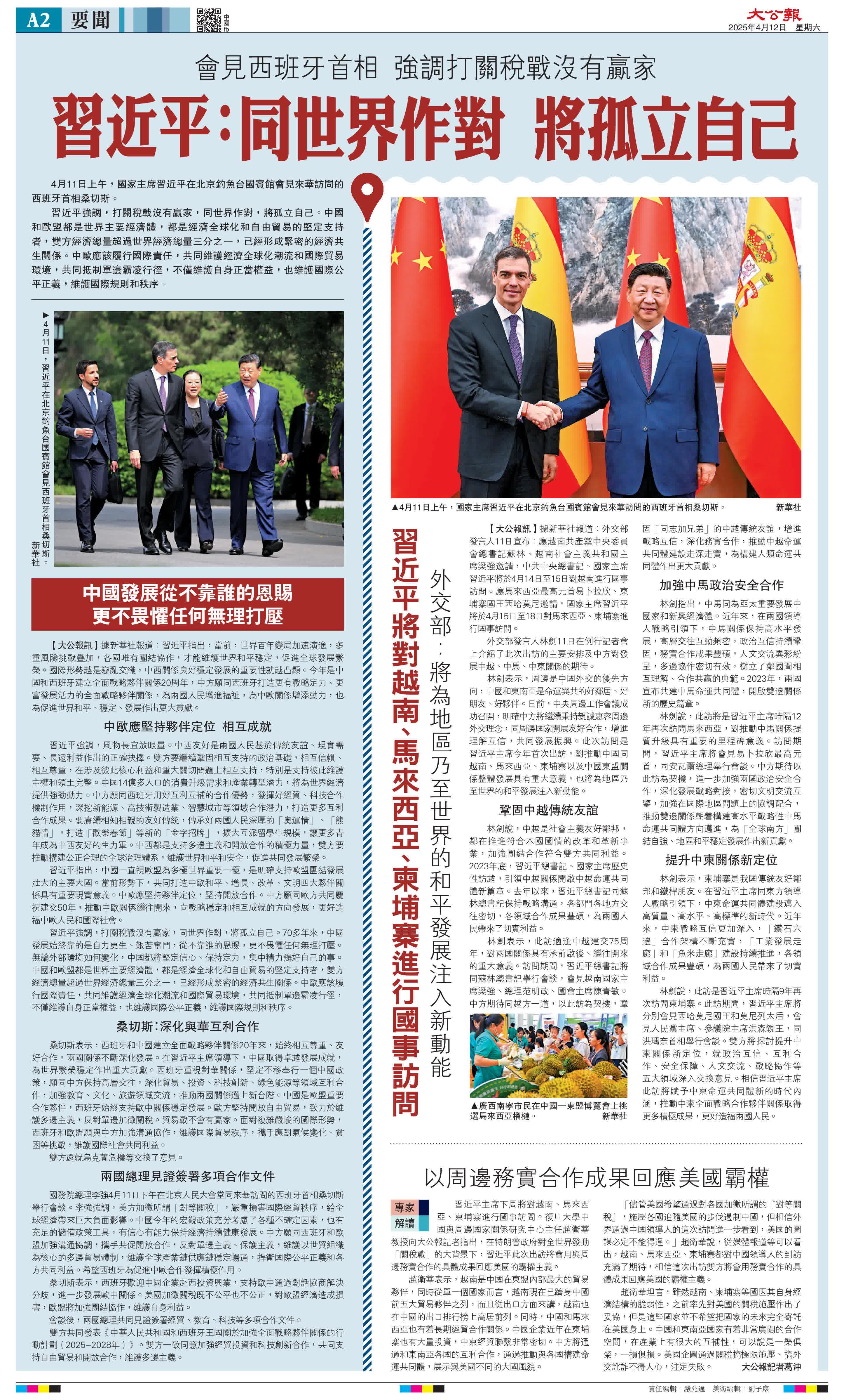 大公報據新華社報道:4月11日上午,國家主席習近平在北京釣魚台國賓館會見來華訪問的西班牙首相桑切斯。