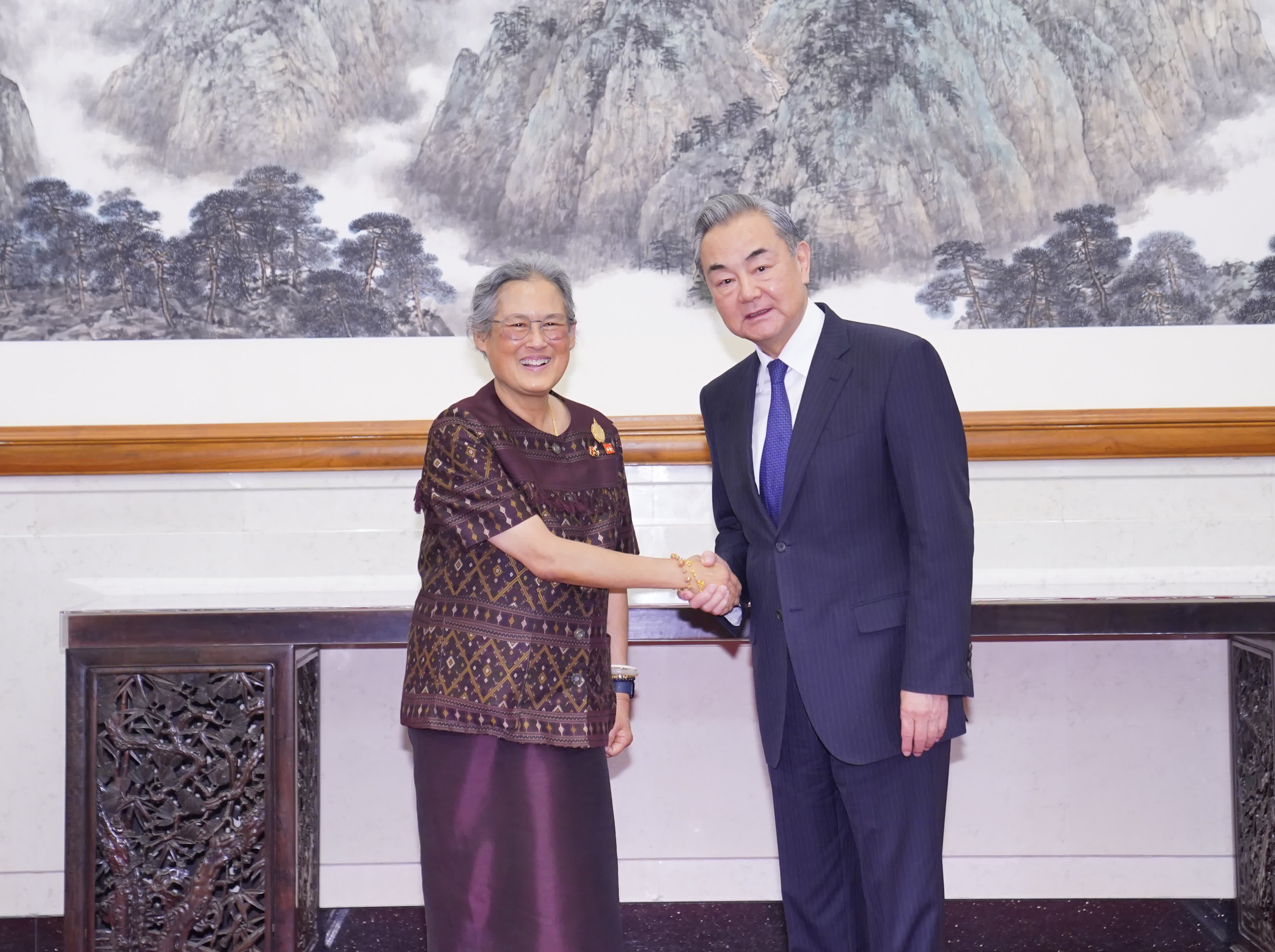 王毅說,公主殿下是中國人民的親密朋友和中泰友好的傑出使者,訪華55次,足跡遍及中國大江南北,親眼見證中國改革開放取得的成就,親自向泰國人民講述中國式現代化的生動故事,有力促進了兩國人民相知相親。中方願同泰方一道,以建交50周年為契機,在兩國領導人的引領下,共同開闢下一個成色更足的中泰關係金色50年,為兩國人民帶來更多福祉。期待泰王室繼續為此發揮特殊作用。