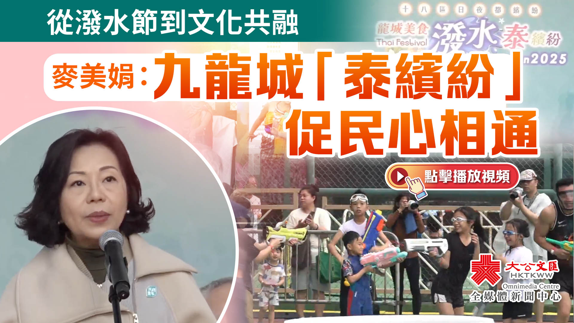 (大公文匯全媒體 記者 馮書朋)「18區日夜都繽紛@龍城美食潑水泰繽紛2025」(泰繽紛)儀式今日(12日)舉行,民政及青年事務局局長麥美娟出席並致辭,她表示,很開心出席今日的嘉年華啟動禮,現場洋溢着濃厚的泰式節日氣氛,今年適逢中泰建交50周年,今次的活動讓廣大市民參與泰國傳統節慶——宋干節,促進了兩地的友誼,特區政府將努力深化與泰國的合作及交流,為雙方的繁榮發展增添正能量。