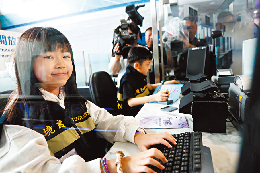 吳同學和陳同學穿上制服,在入境檢查櫃內有模有樣地「扮工」。吳同學表示,這是兩表兄妹首次近距離了解入境處工作,感到新鮮好玩又可增廣見聞,「剛才去看了模擬法庭,學到好多,這個入境檢查位也很好玩,和真的關口檢查一模一樣。」她說,經工作人員講解,了解到入境處在國安工作中的重要角色,可防止有潛在風險者進入香港。