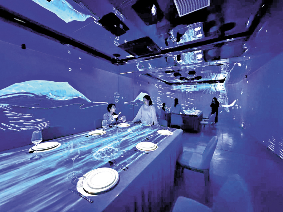據介紹,5D全息光影宴會廳能夠在瞬間實現場景的無縫切換。無論是浪漫的海底世界、神秘的宇宙星空,還是古典的中式婚禮場景,都能輕鬆呈現。「這種一廳多用的特性,能解決傳統宴會廳功能相對單一、裝修風格固定,難以滿足日益多樣化市場需求的困境,讓酒店在有限的空間與時間裏,承接更多不同類型的宴會活動。」黃林說。