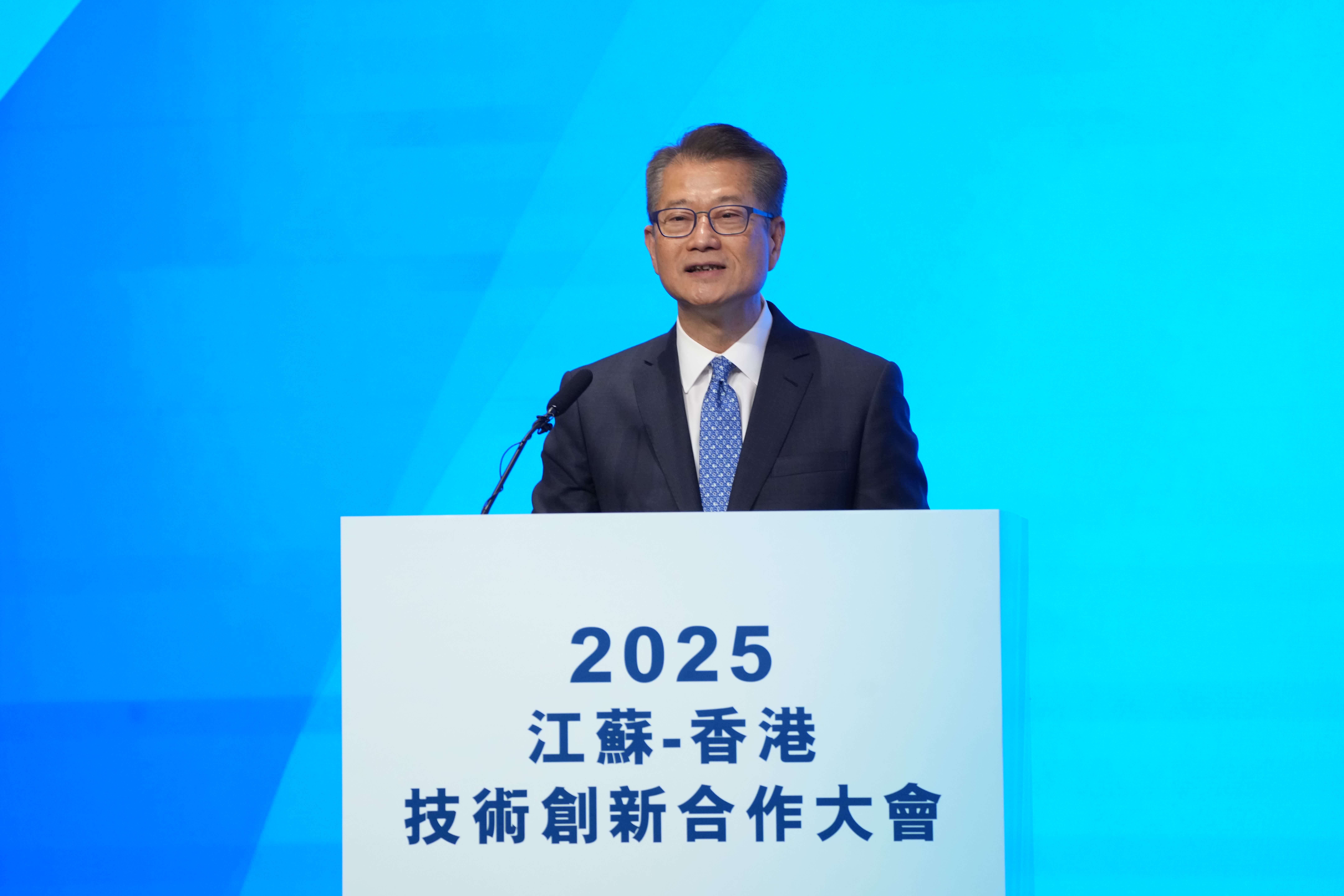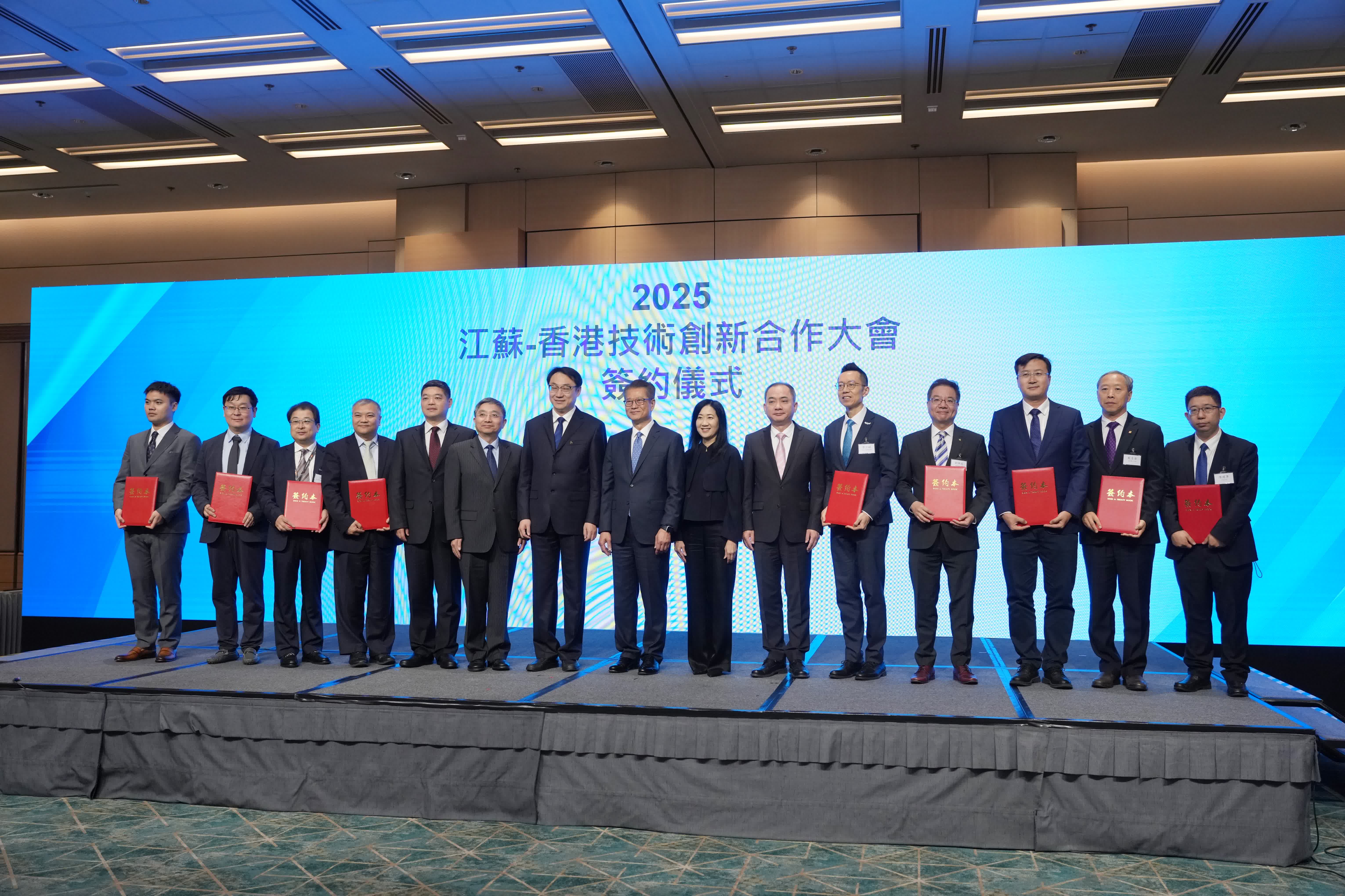 (香港文匯報 記者 譚澤滔)江蘇省科技廳今日(4月14日)在港舉辦「江蘇香港技術創新合作大會」。江蘇省人民政府副省長趙岩、香港特別行政區政府財政司司長陳茂波及香港貿發局總裁方舜文等出席大會,並參與揭牌及簽約儀式。