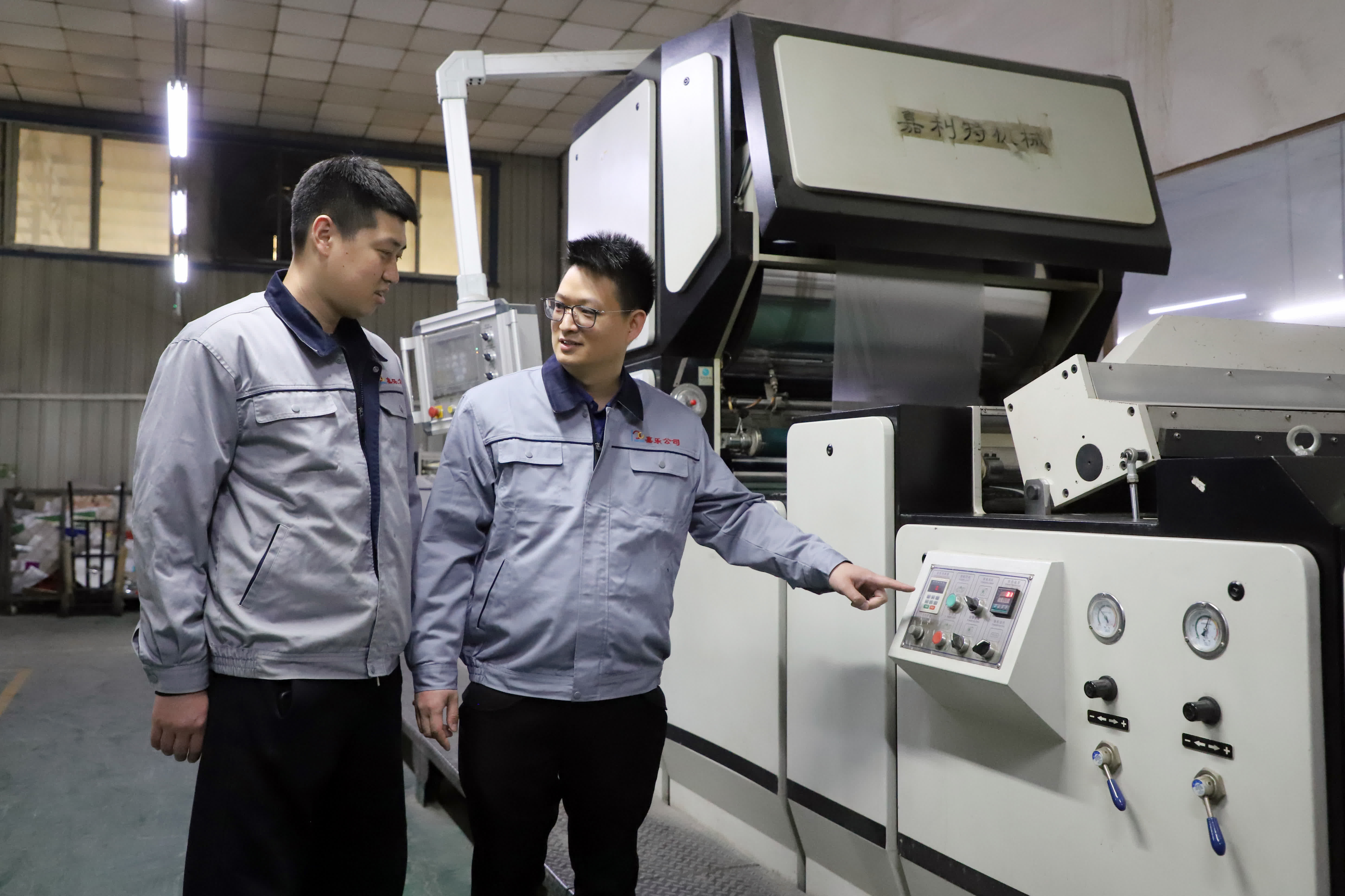 此外,陳子峰也陸續斥資3000餘萬元升級三條進口印刷機生產線,解決了大規格包裝彩印難題,成長為當地屈指可數的彩印包裝龍頭企業。與印刷機相匹配,覆膜機也是生產彩印包裝的關鍵設備之一。「以前的覆膜設備需要三個人協同操作,而我們新引進的機器只需要一人,效率卻能提高近兩倍。」伴隨先進的數字化設備陸續引入,嘉樂彩印也吸引周邊眾多印刷廠尋求外協合作。