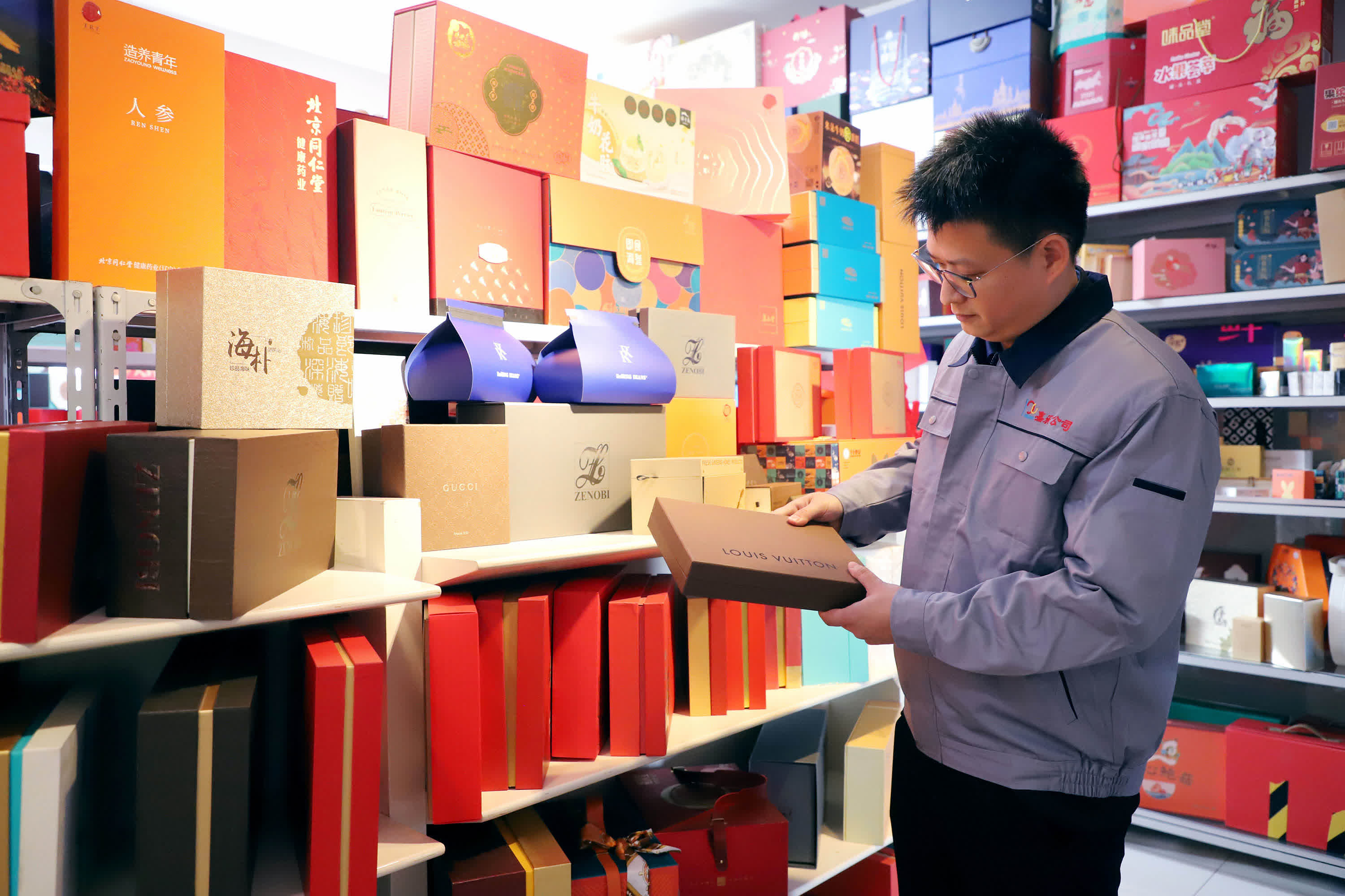 走進嘉樂彩印產品陳列間,數千款由其專為國際國內品牌定製的包裝琳琅滿目。小到化妝品盒,大到家電盒,其中更不乏Gucci、LV等國際一線奢侈品大牌包裝。